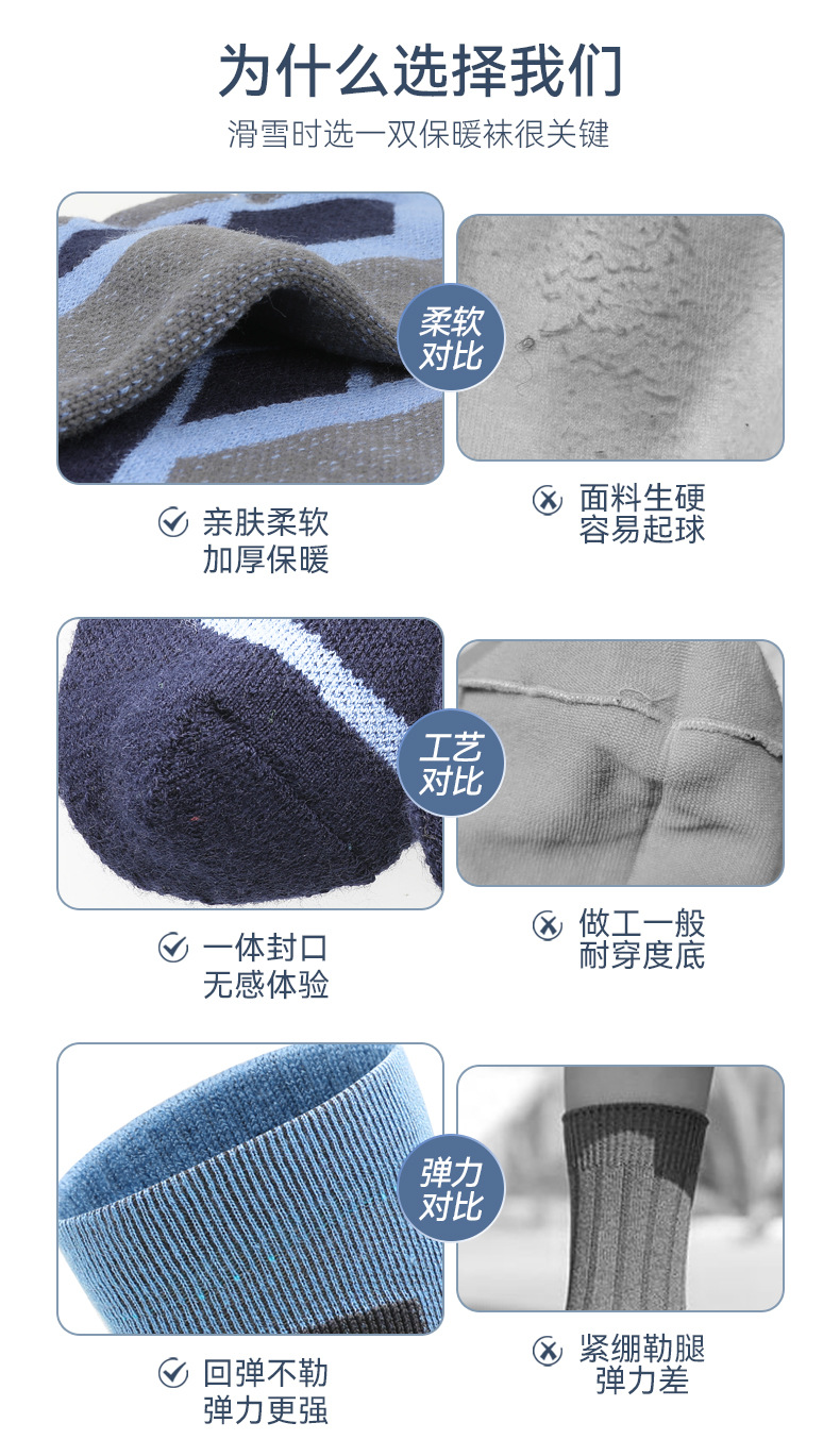 Calcetines de esquí de tubo alto de invierno para niños, fondo de toalla para adultos, calcetines cálidos gruesos de tubo largo, calcetines de lana Merino