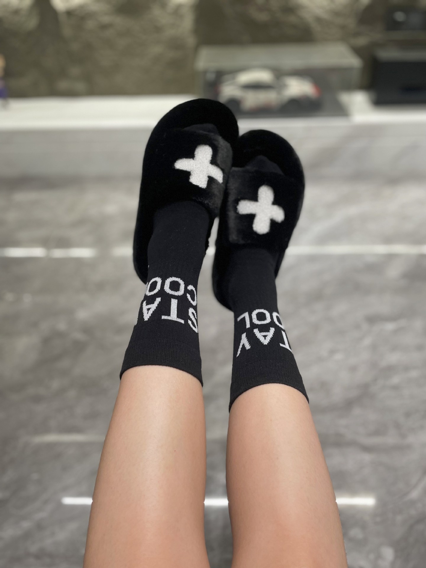 Internet celebridad Nueva ins moda blanco y negro completo impreso Babi Rosa letra calcetines deportes europeos media pantorrilla longitud calcetines algodón hombres y mujeres