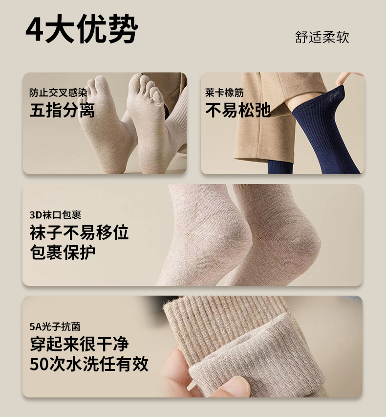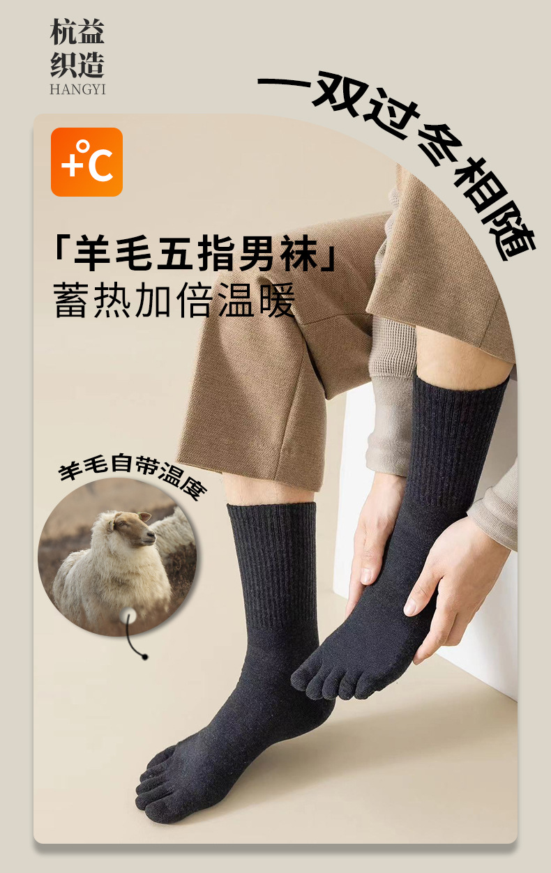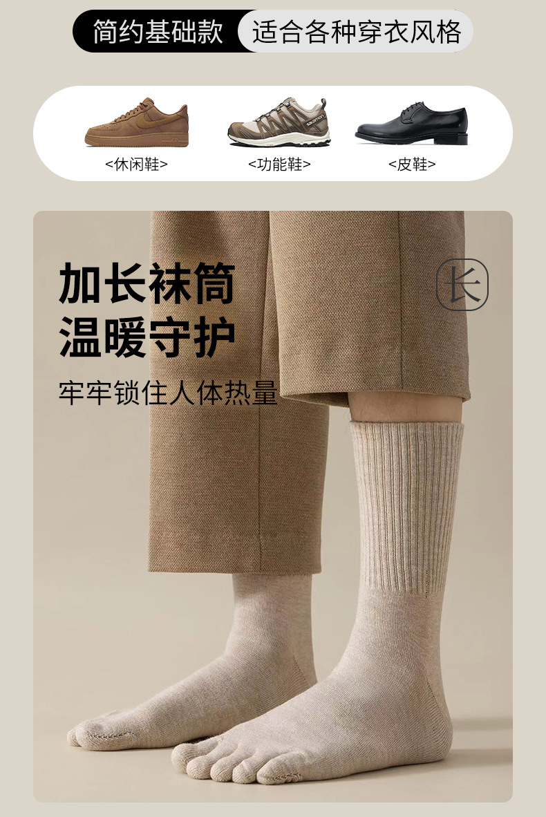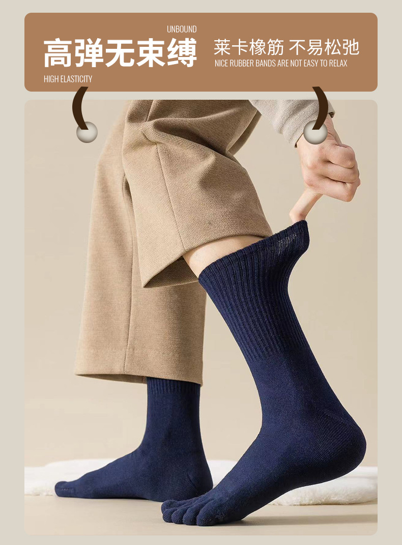 Otoño e invierno de los hombres de lana caliente de cinco dedos calcetines de dedo sin hueso absorbente de sudor calcetines antibacterianos desodorante antifricción medias engrosadas