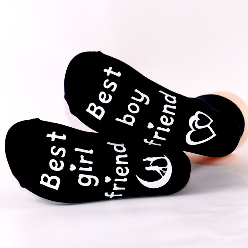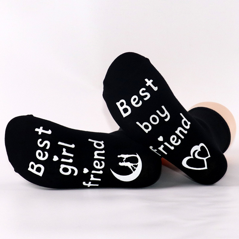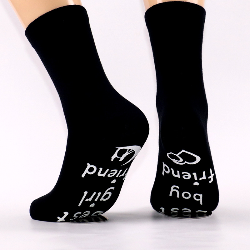 En stock nuevos calcetines de media pantorrilla de algodón populares transfronterizos europeos y americanos calcetines de pareja calcetines de pie carta de dispensación calcetines de piso antideslizantes