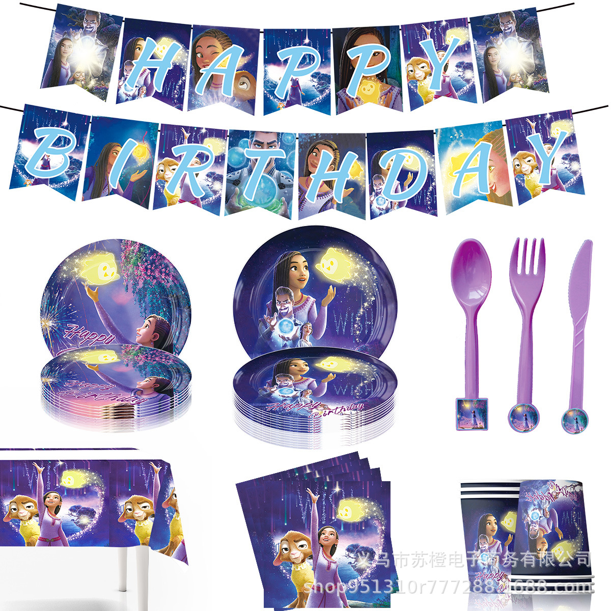 Estrella deseo cumpleaños tema Fiesta suministros vajilla decorativa Placa de papel taza tejido mantel cuchillo tenedor cuchara vajilla traje