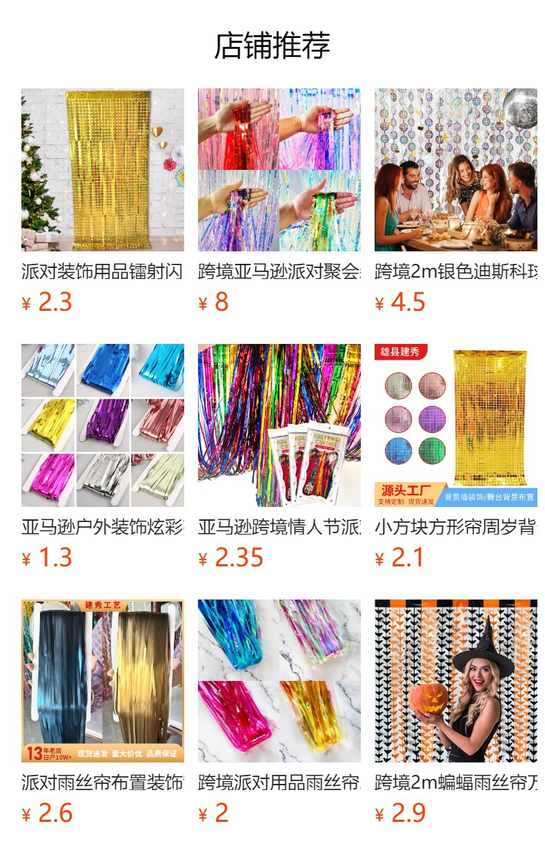 Transfronterizo Amazon 2m cortina de seda de lluvia colorida doble color brillante fiesta de cumpleaños suministros borla cortina de seda de lluvia
