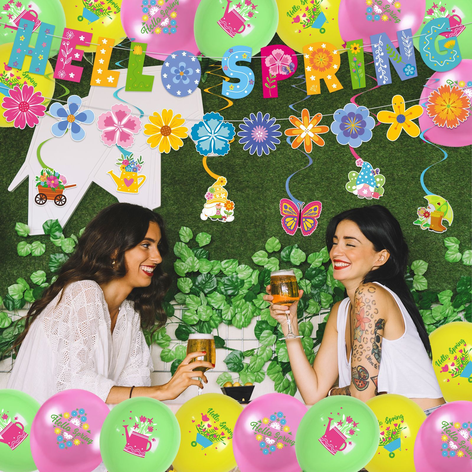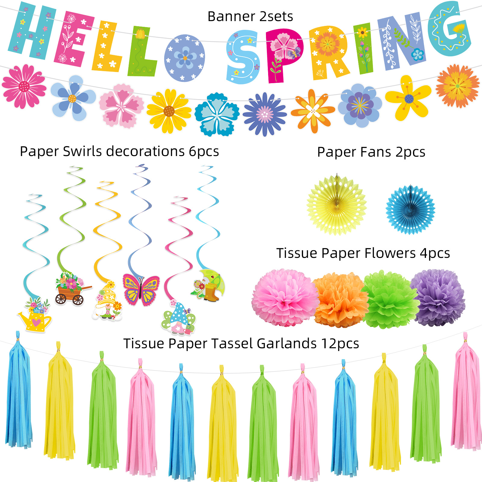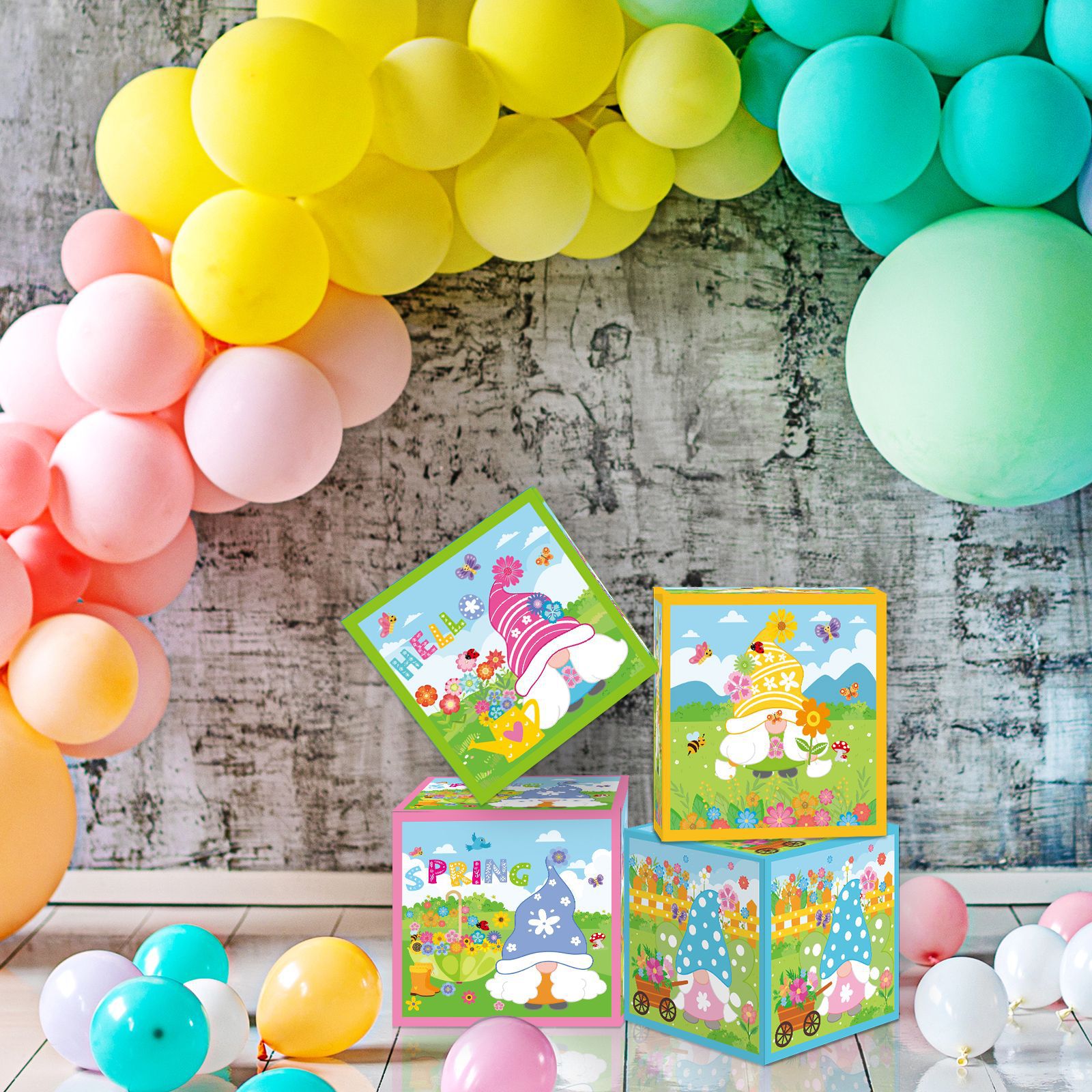 Nueva primavera tema Fiesta decoración Fondo traje tirar bandera papel flor tarjeta colgante tablón de anuncios globo caja