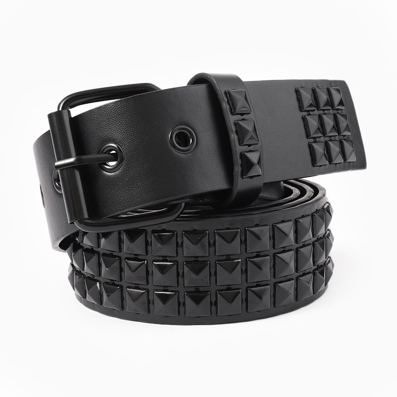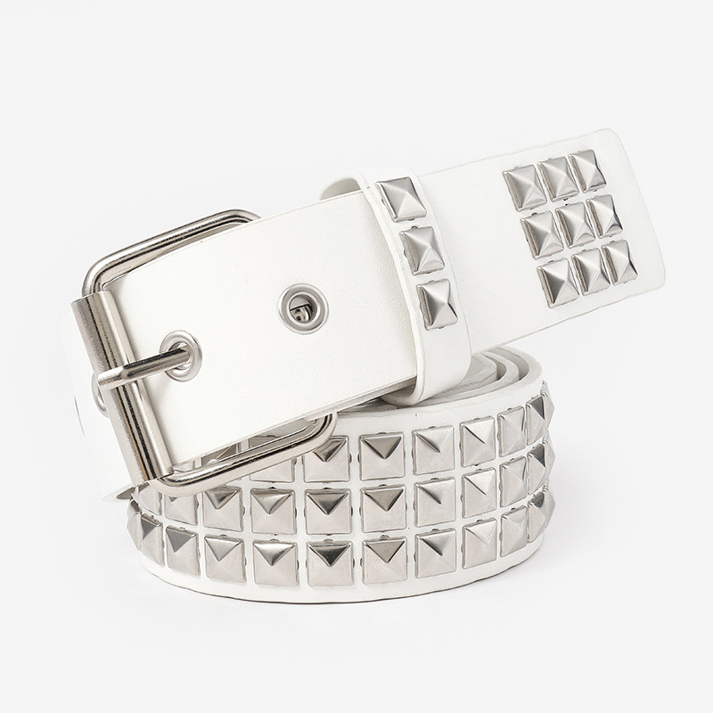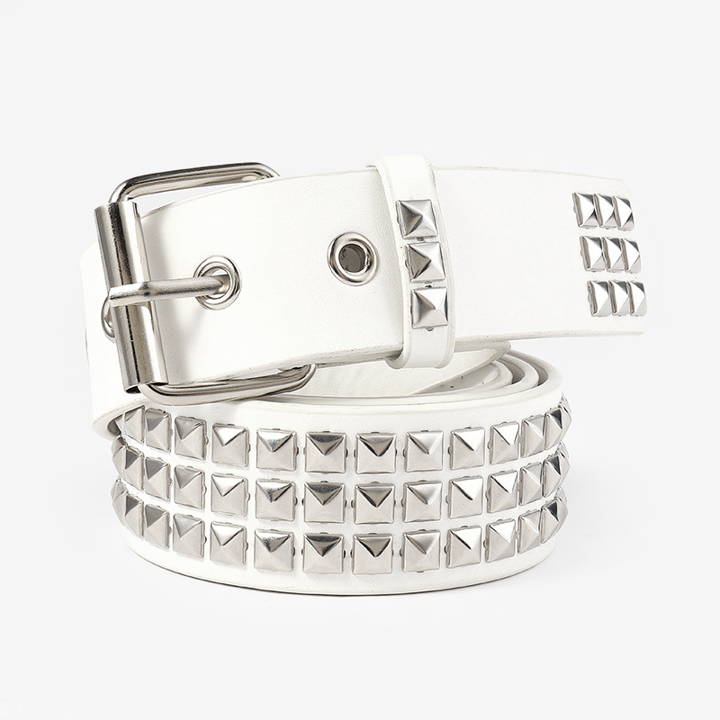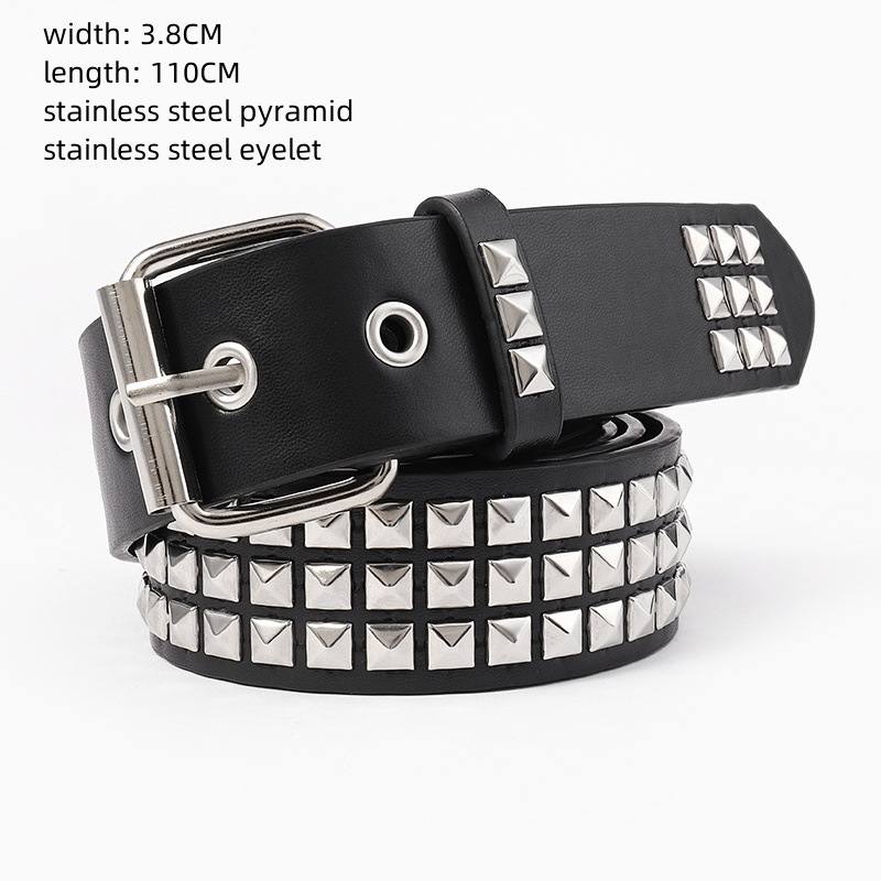 Nuevo europeo y americano punk bala moda todo fósforo hombres cinturón cuadrado pirámide remache juego jeans traje