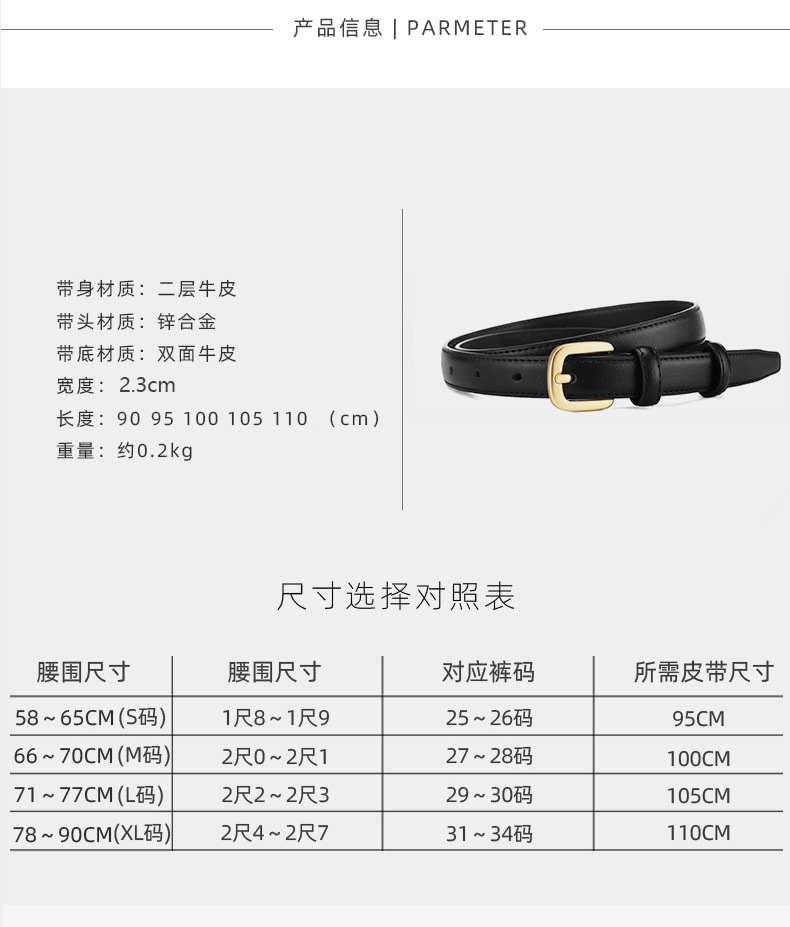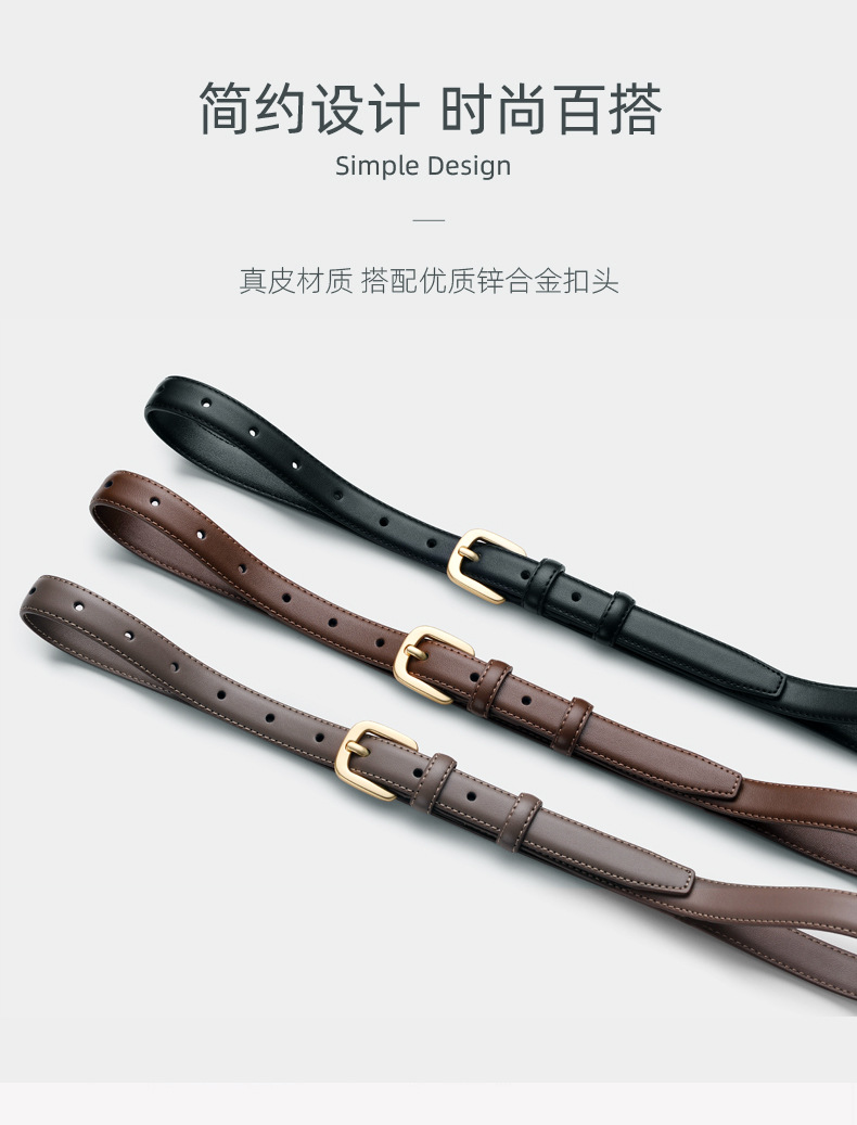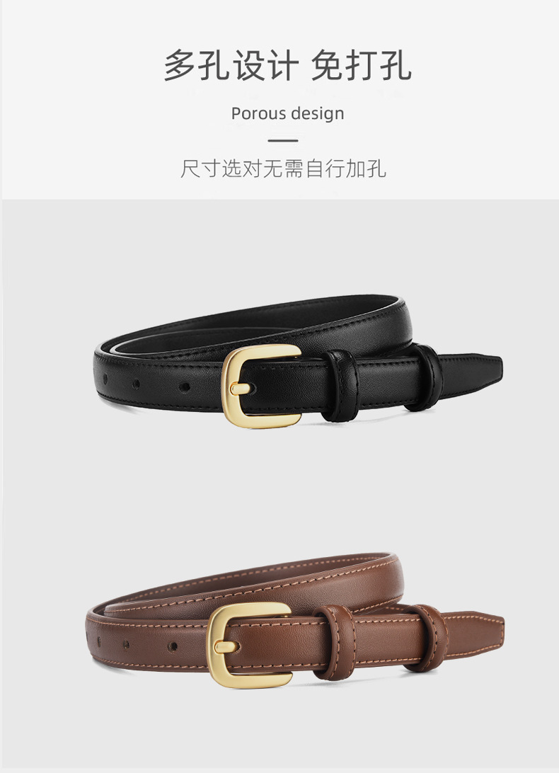 Cinturón de cuero para mujer hebilla simple moda versátil negro clásico