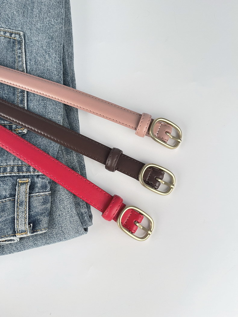 Correa delgada de cuero de las mujeres pantalones casuales pantalones vaqueros estilo coreano de moda todo partido simple de cuero de vaca cinturón de las mujeres