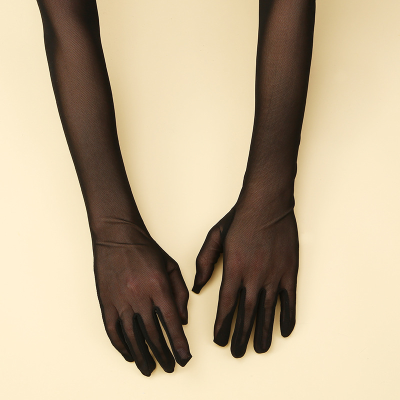 Guantes largos transparentes para mujer, negros, elásticos, de encaje, semitransparentes, para ópera, Halloween, actuaciones nocturnas, de malla
