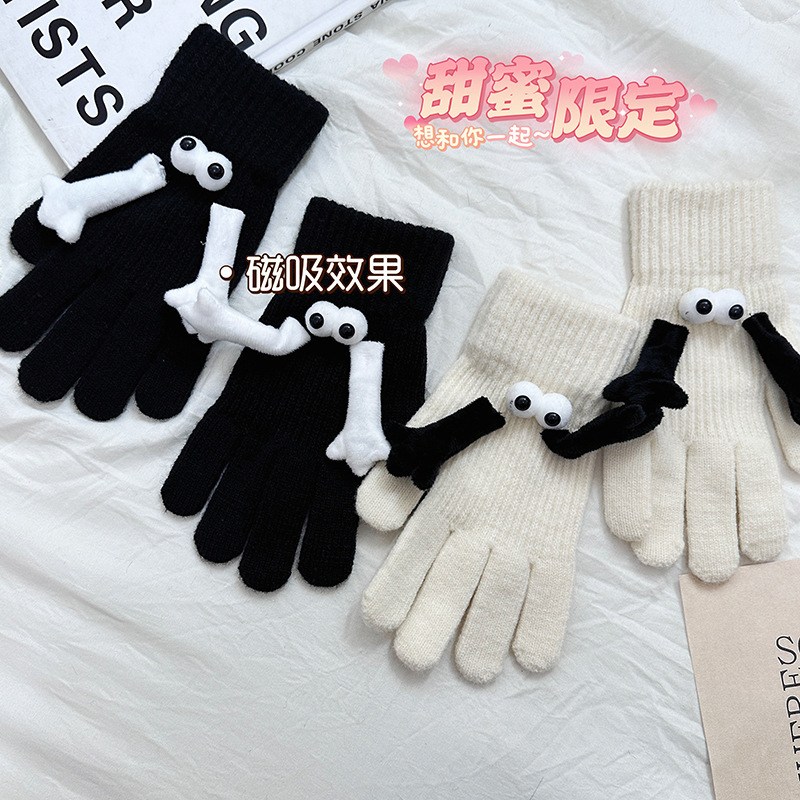 2023 Otoño e Invierno nueva pareja estudiante magnético guantes calientes muñeca linda al aire libre negro cerdas mano guantes
