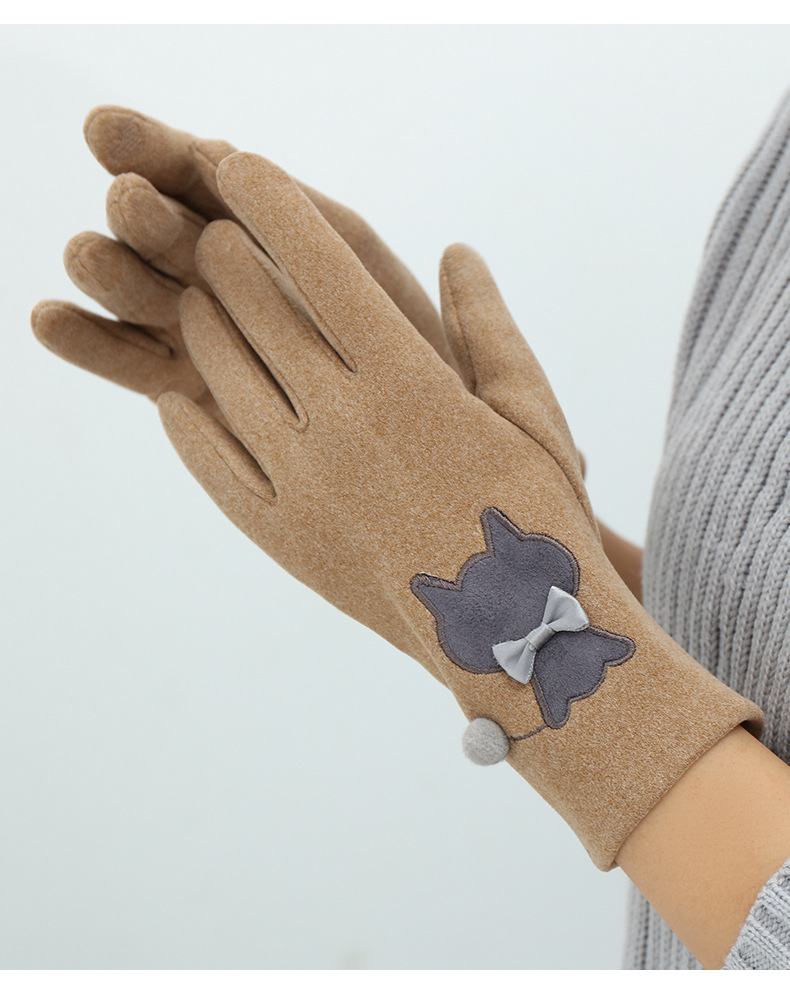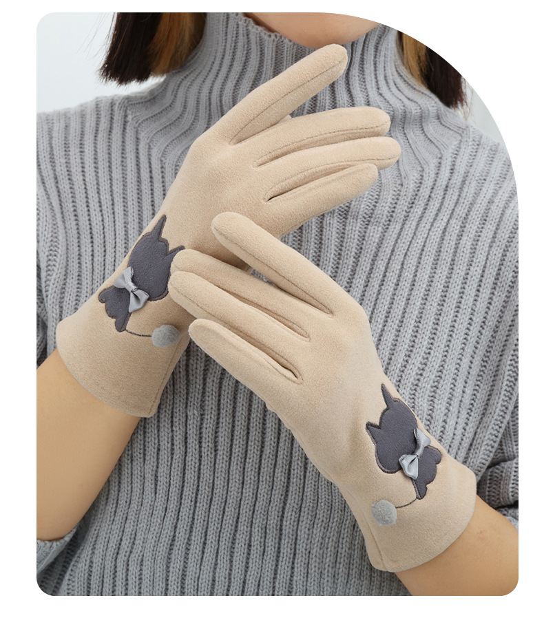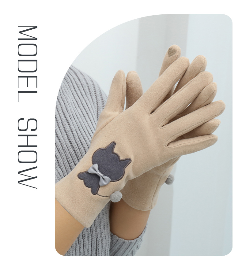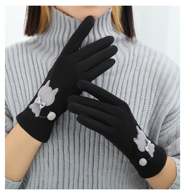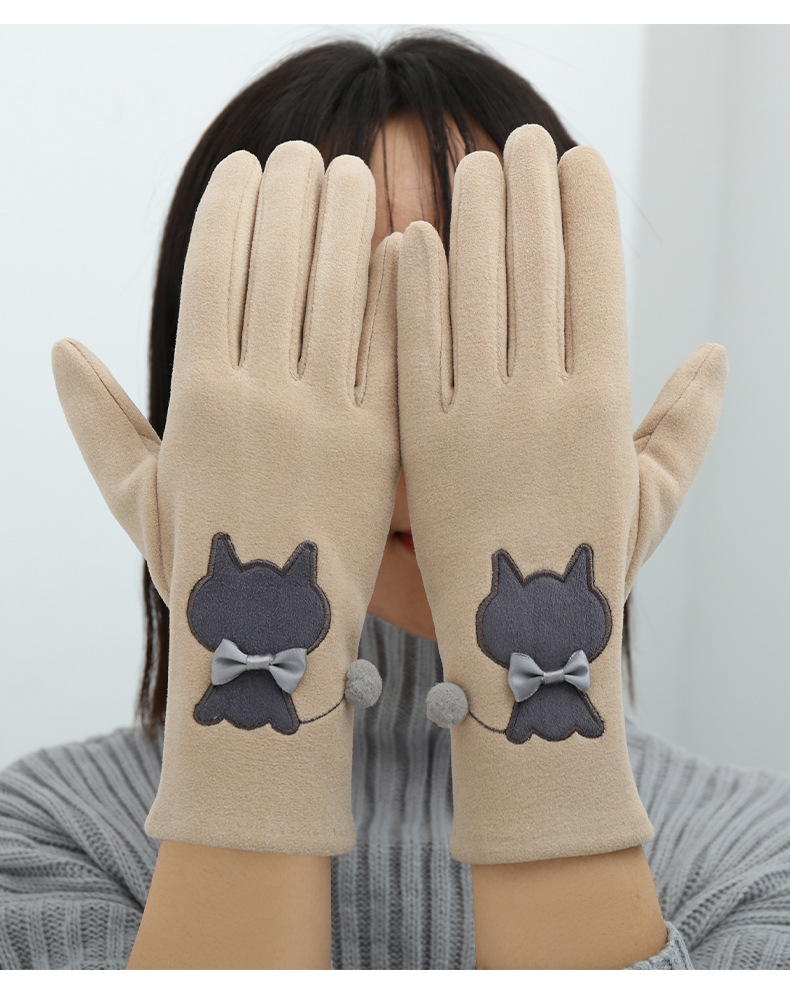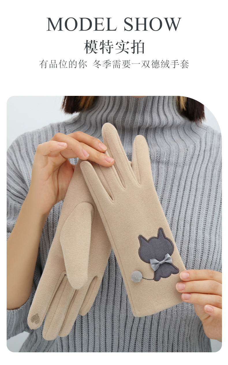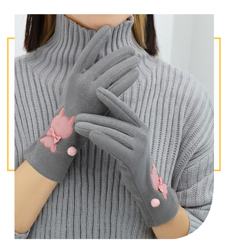 Las mujeres de invierno con forro polar esquí cálido estilo coreano lindo estudiante montar guantes de terciopelo transfronterizo al por mayor pantalla táctil de cinco dedos