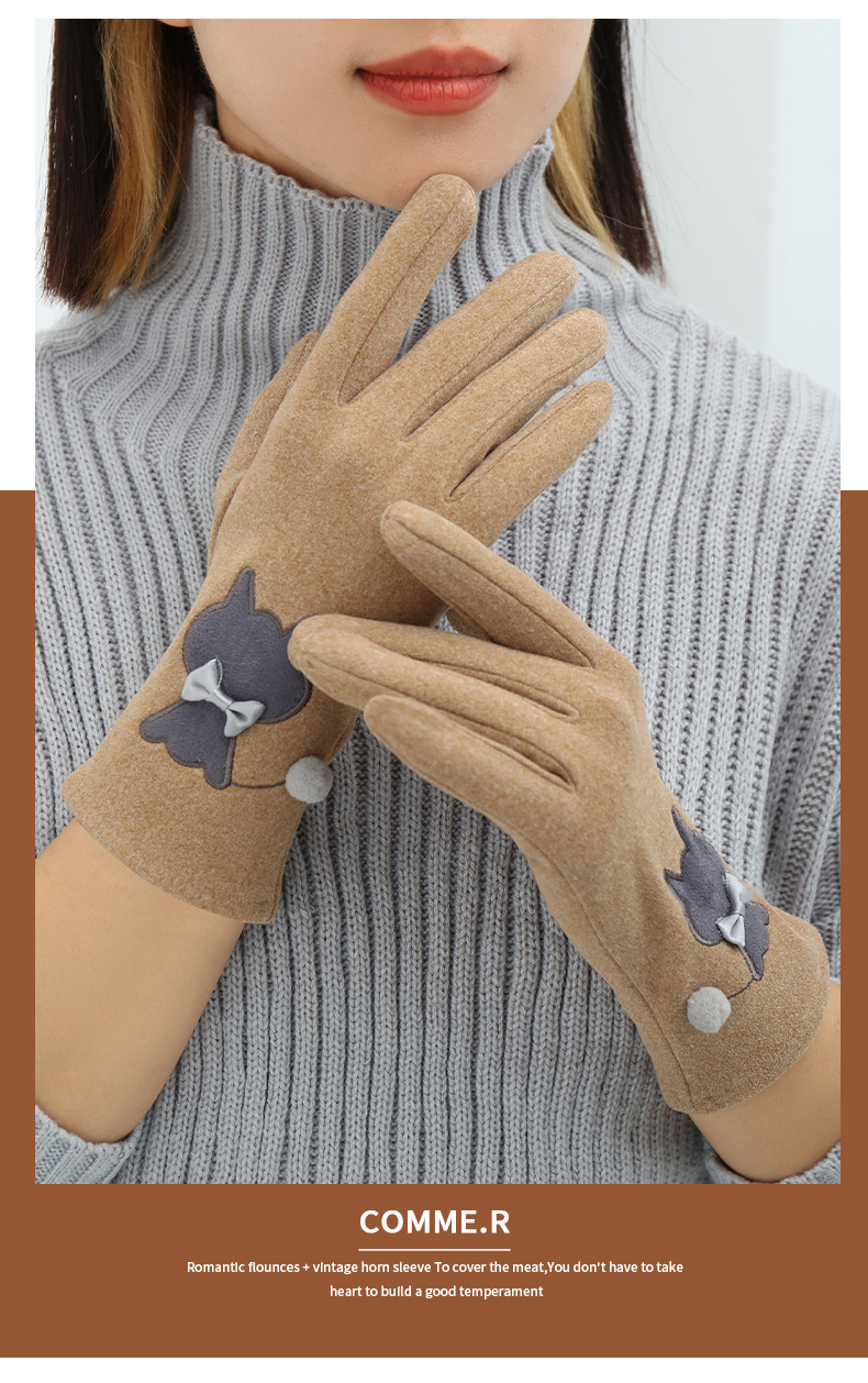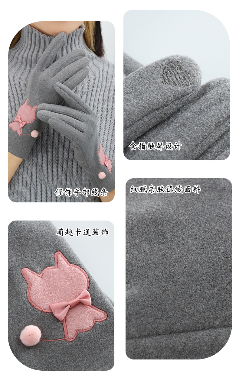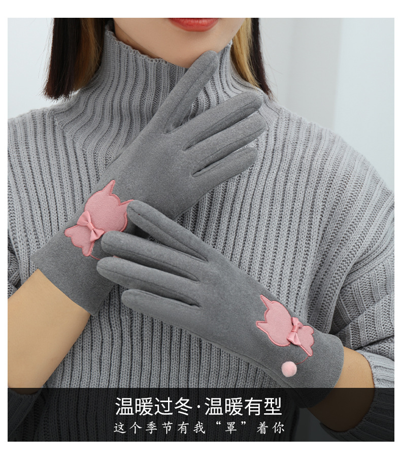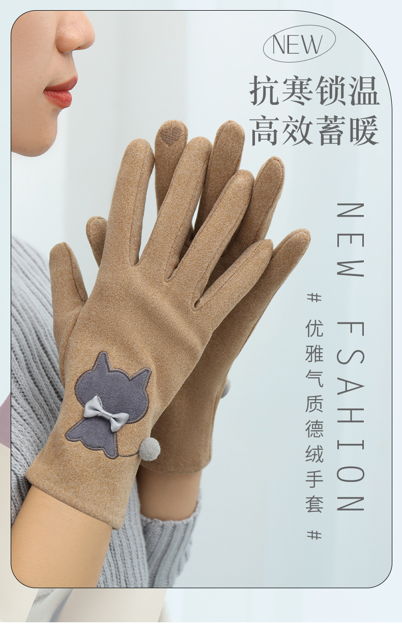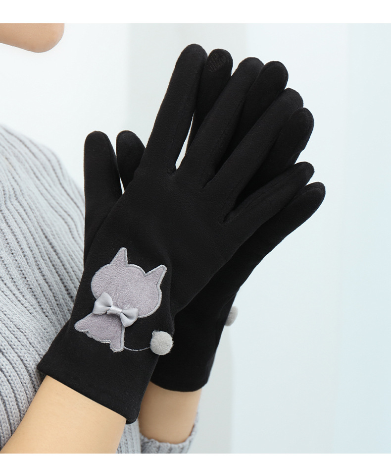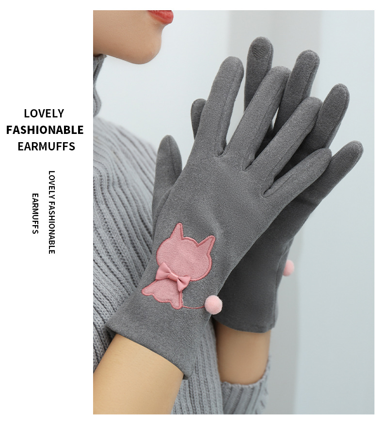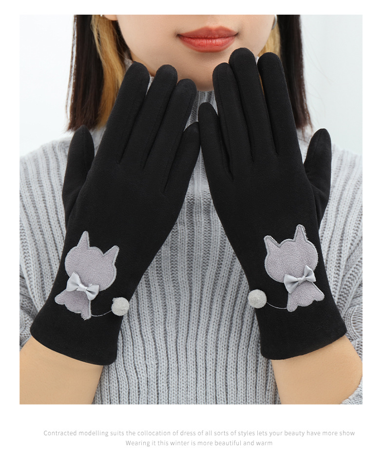 Las mujeres de invierno con forro polar esquí cálido estilo coreano lindo estudiante montar guantes de terciopelo transfronterizo al por mayor pantalla táctil de cinco dedos