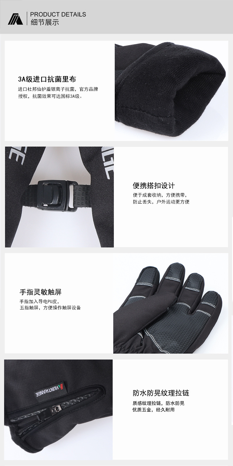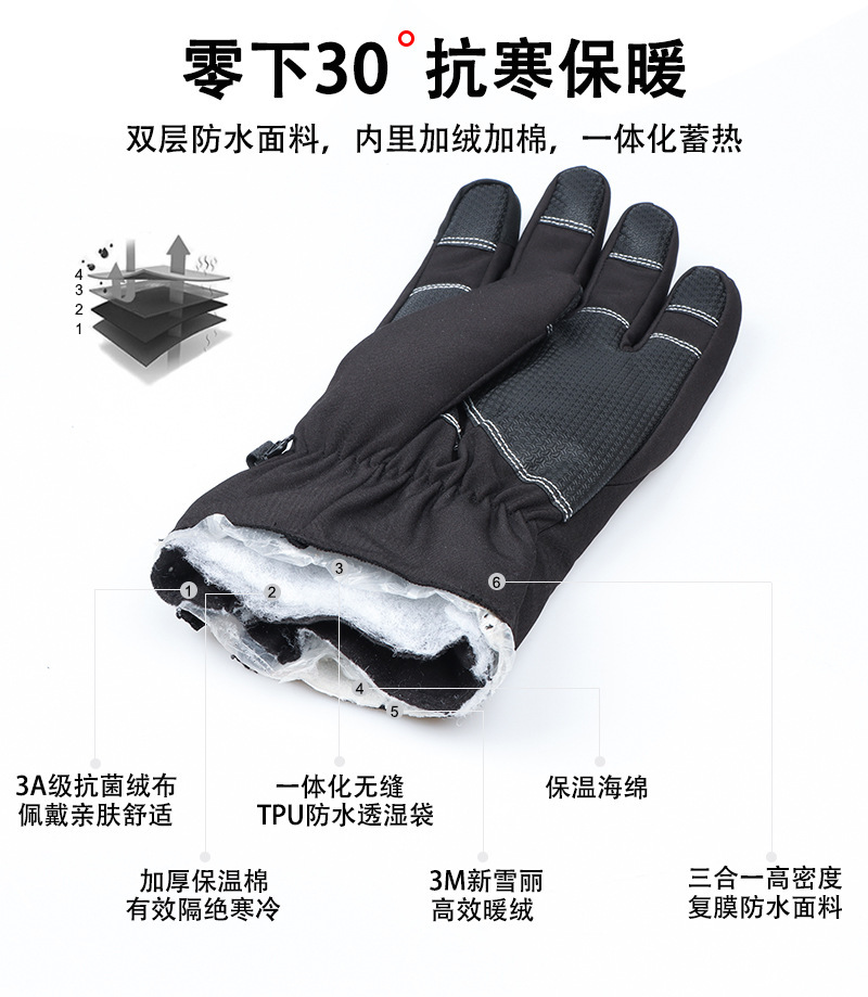 Guantes de esquí de los hombres a prueba de frío pantalla táctil guantes calientes 3M xinxueli forro polar antibacteriano ciclismo guantes ciclismo caliente