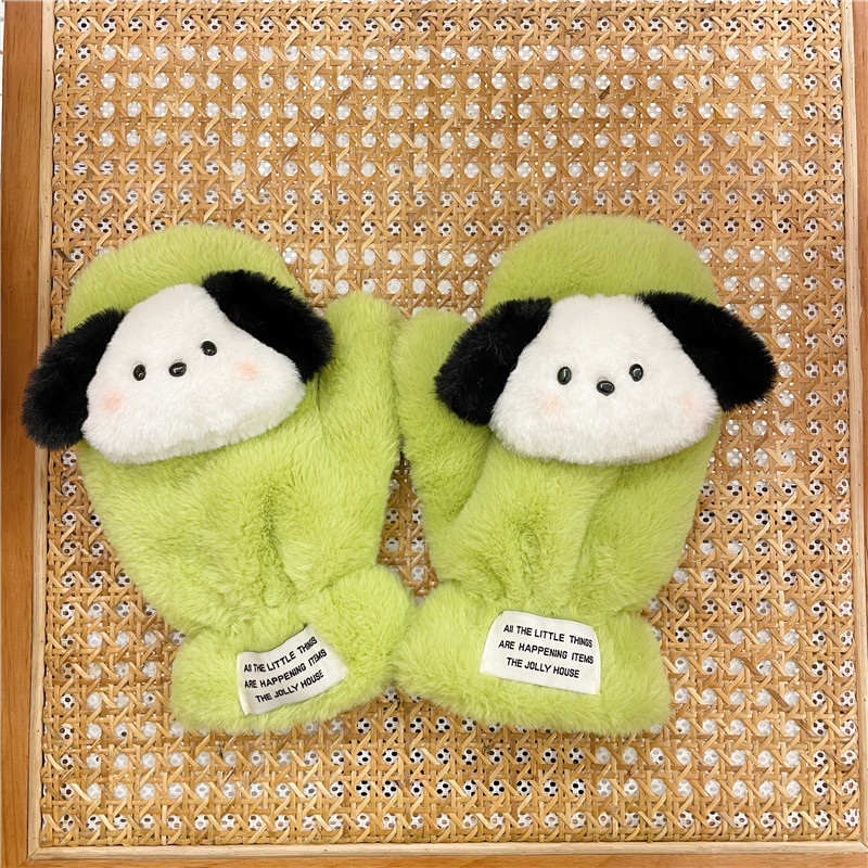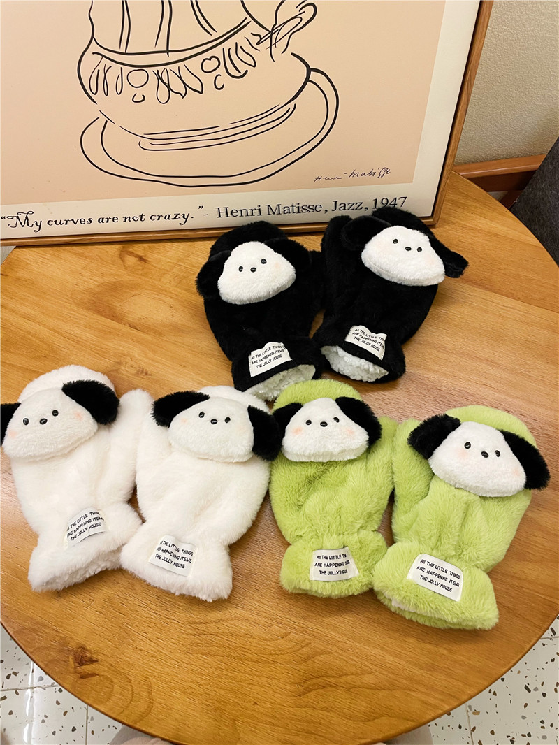 Patchard perro lindo felpa perro guantes niña invierno ciclismo frío estudiantes guantes calientes puede ser colgando cuello
