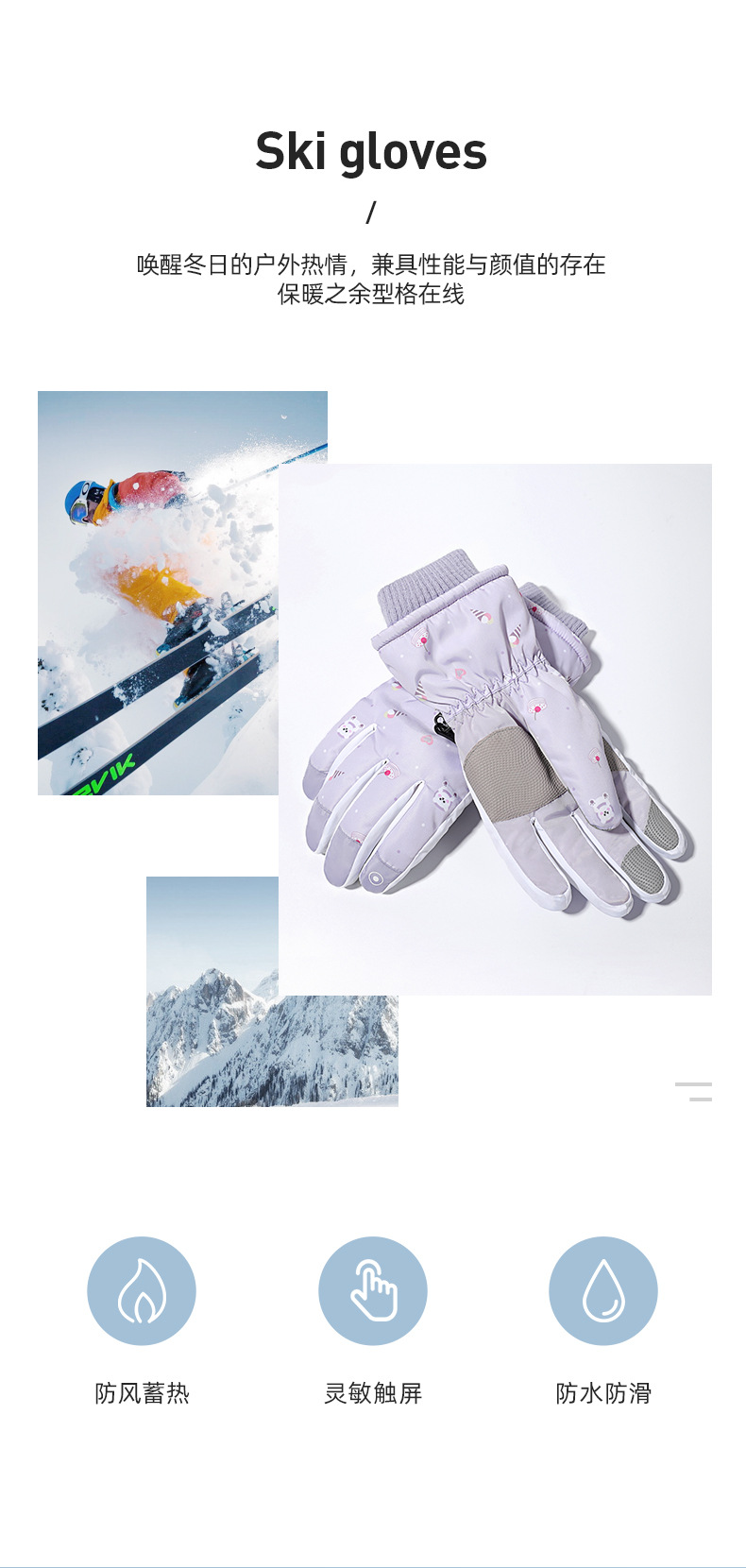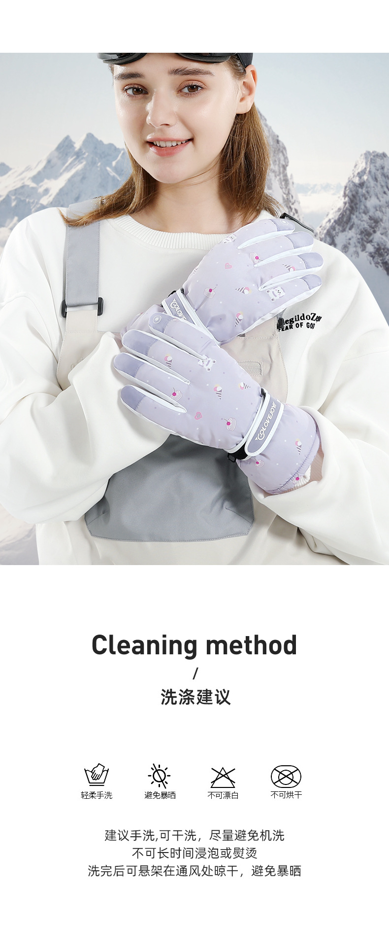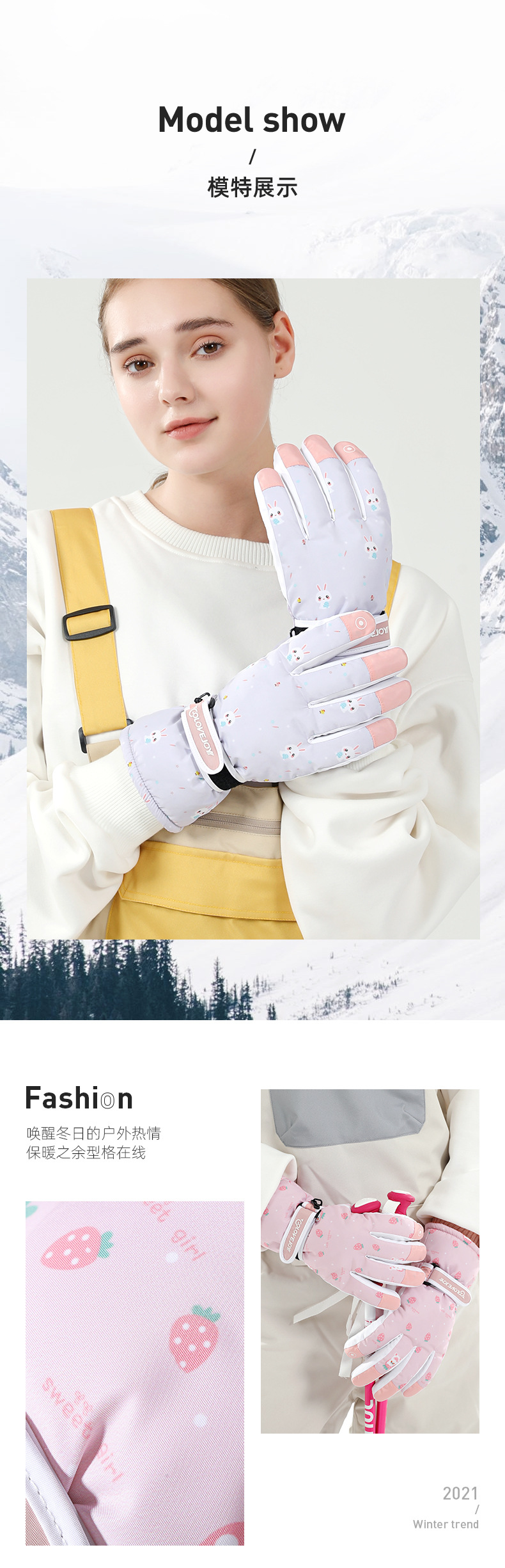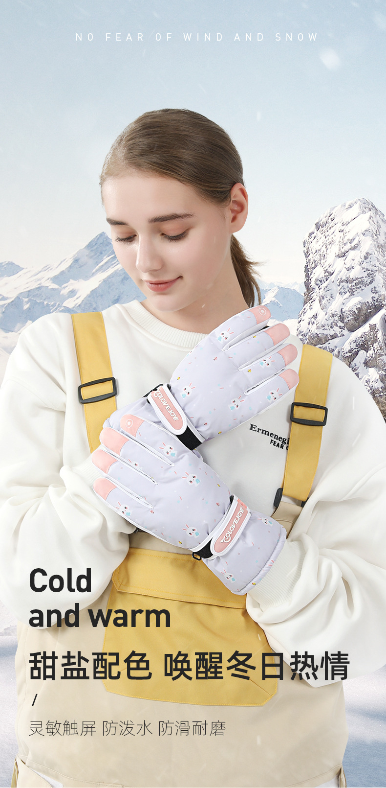 Guantes de esquí cálidos de invierno para mujeres que montan deportes al aire libre antideslizante forrado de vellón engrosado coche eléctrico a prueba de viento guantes a prueba de frío