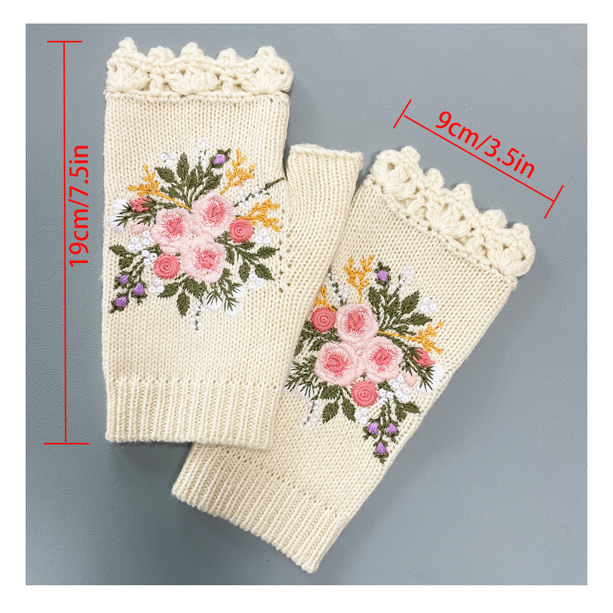 Transfronterizo Amazon estación independiente nueva mujer otoño e invierno cálido hecho a mano de ganchillo bordado floral medio dedo guantes de punto