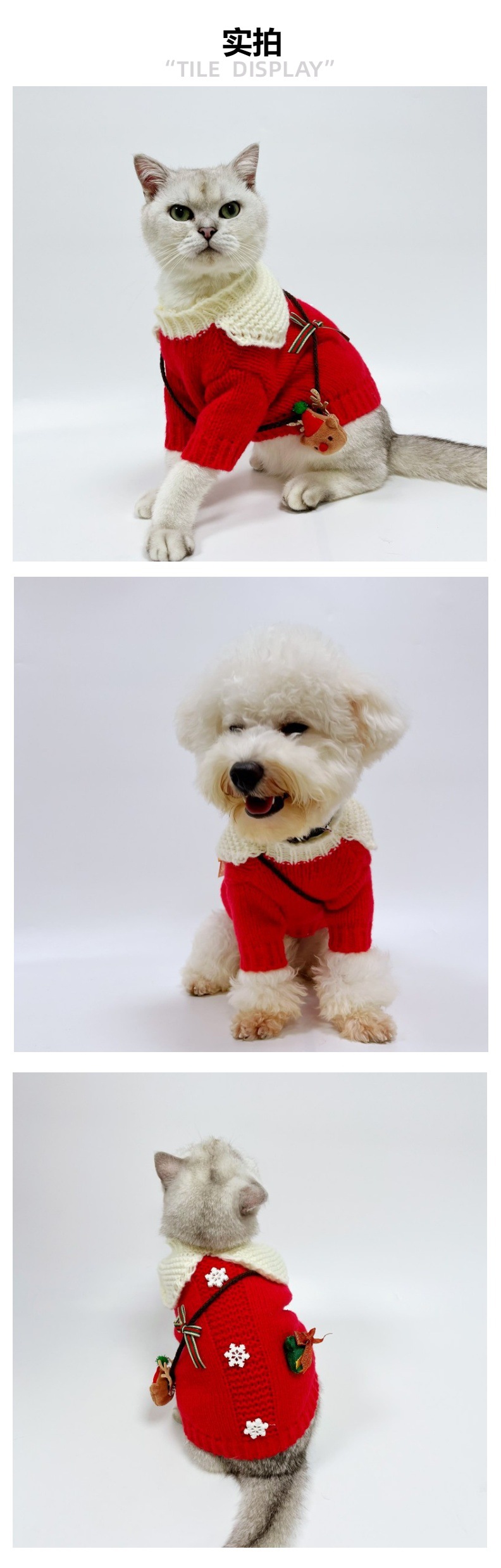 Lindo tejido PET suéter Navidad crossbody bolsa cachorro gatito oso azul blanco otoño y el invierno cálido peluche bomei ropa