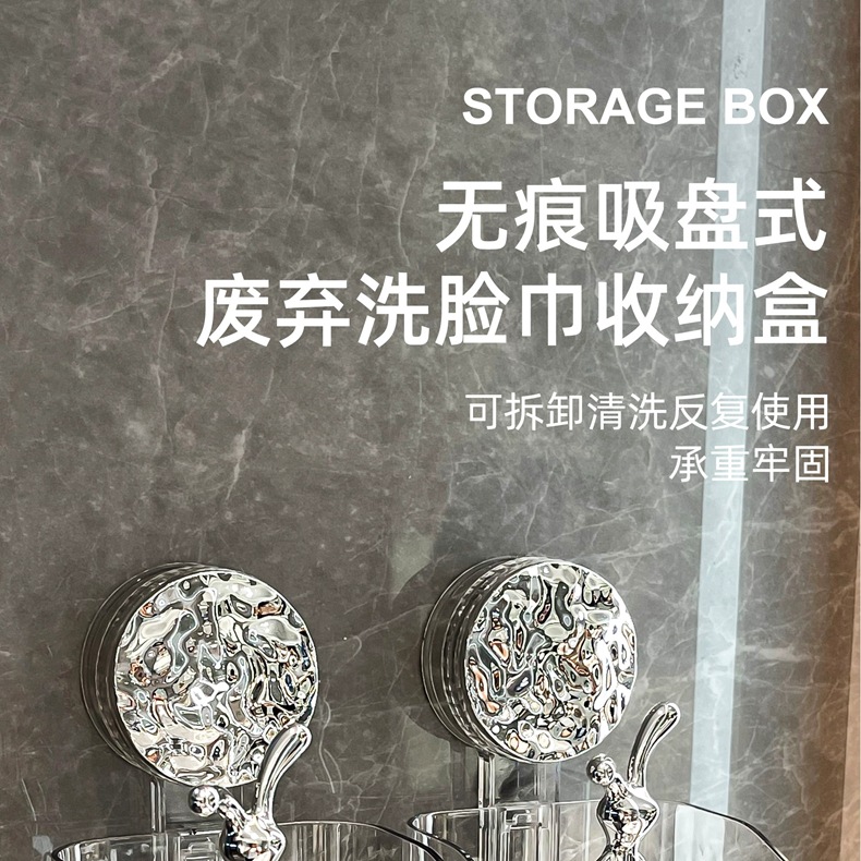 Ventosa descartada cara toalla caja de almacenamiento montado en la pared lavabo estante de almacenamiento cara toalla estante de almacenamiento baño cesta colgante