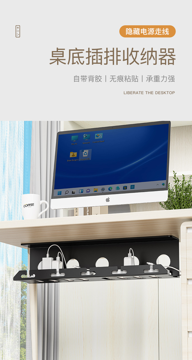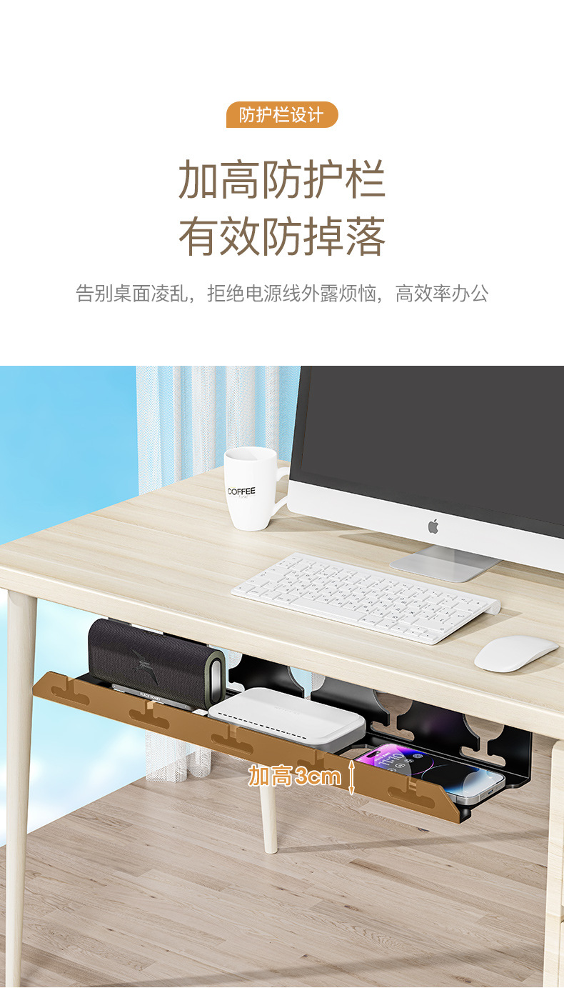 Organizador de cables debajo del escritorio sin necesidad de taladrar, organizador de cables enchufable, estante colgante para almacenamiento de escritorio, estante tipo cesta, estante de almacenamiento, soporte simple.