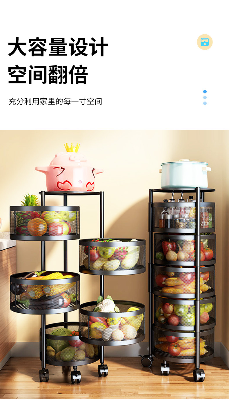 Estante de almacenamiento de esquina de cocina gratuito, estante de verduras, estante de almacenamiento giratorio de piso para sala de estar móvil, carrito