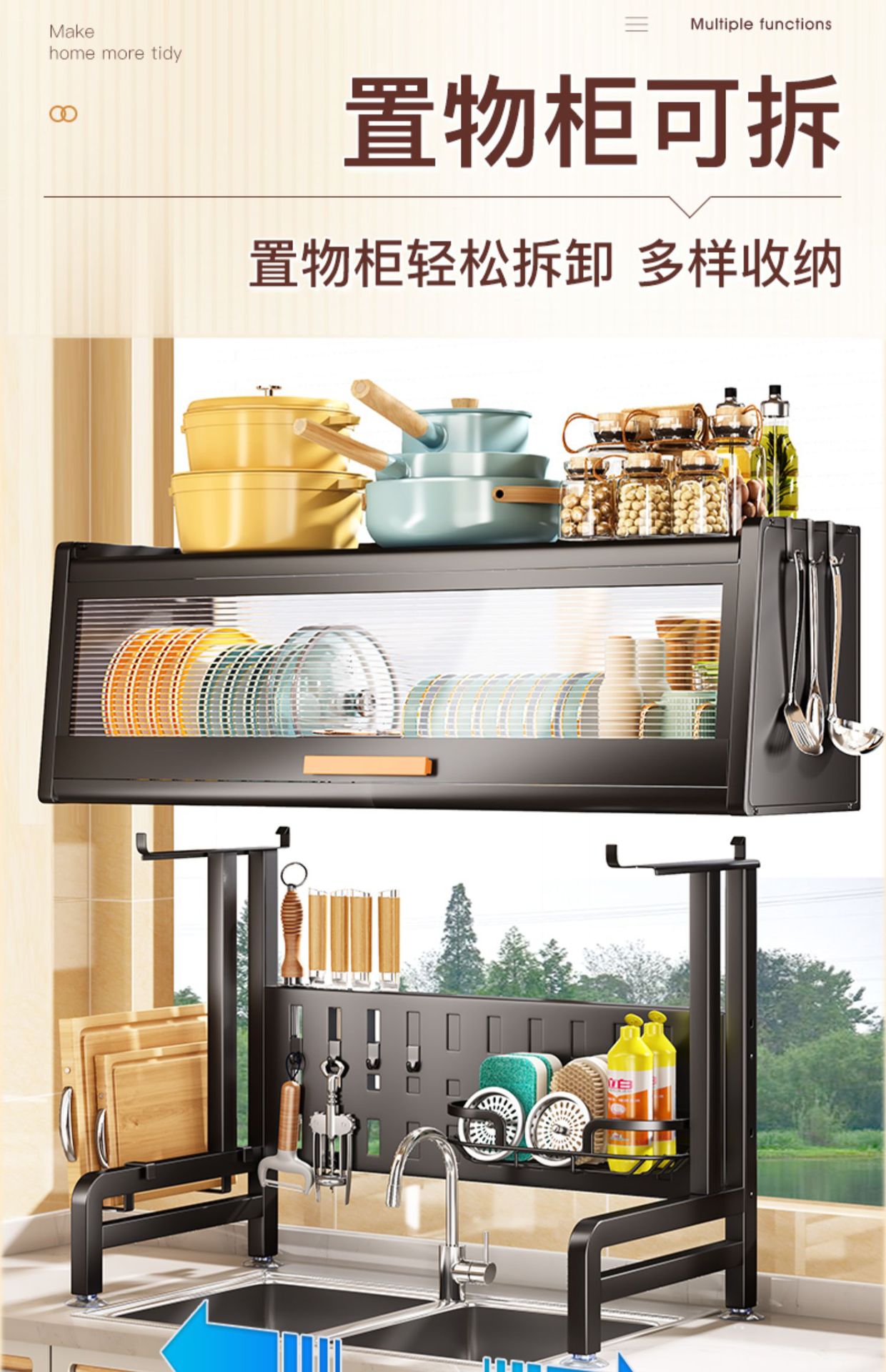 Fregadero estante de almacenamiento de cocina Nueva cocina retráctil estante de drenaje encimera tazón plato con puerta de almacenamiento rack armario