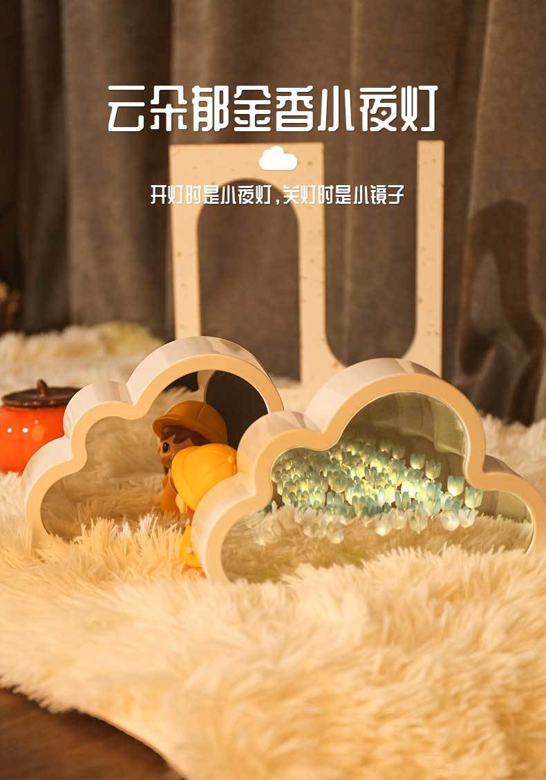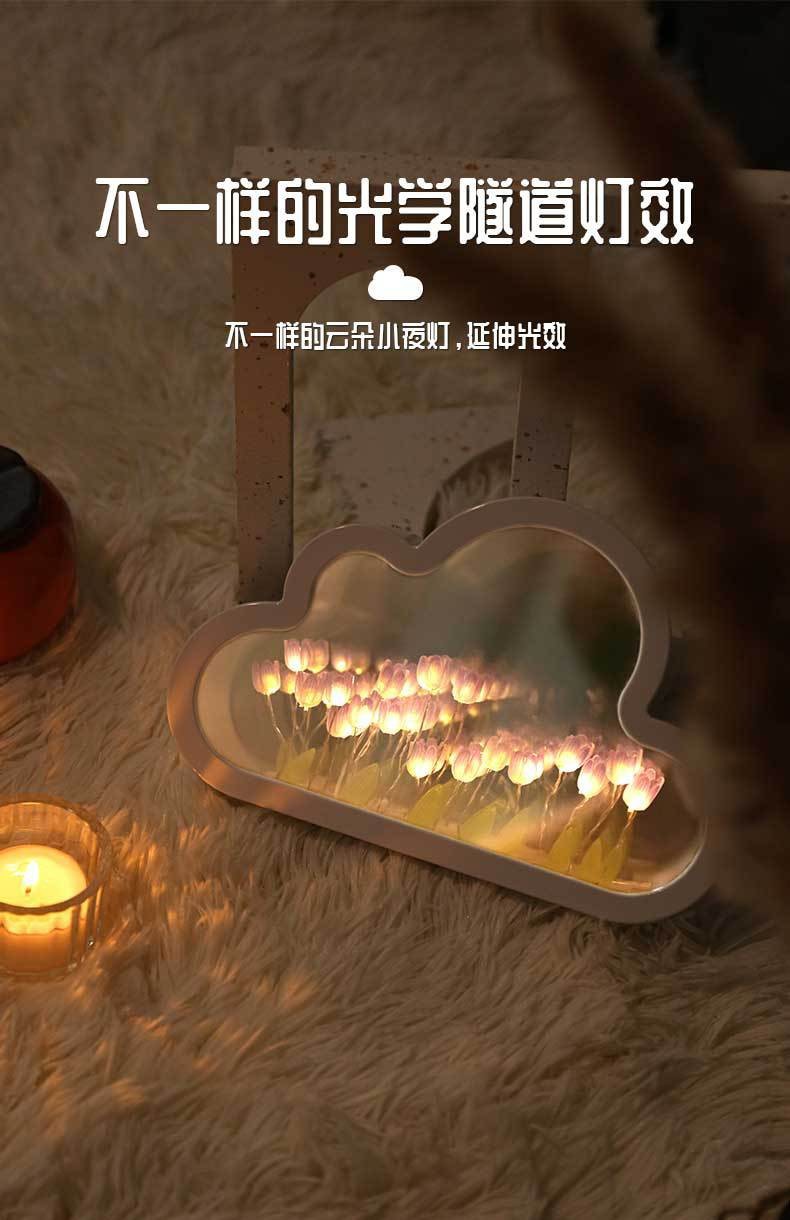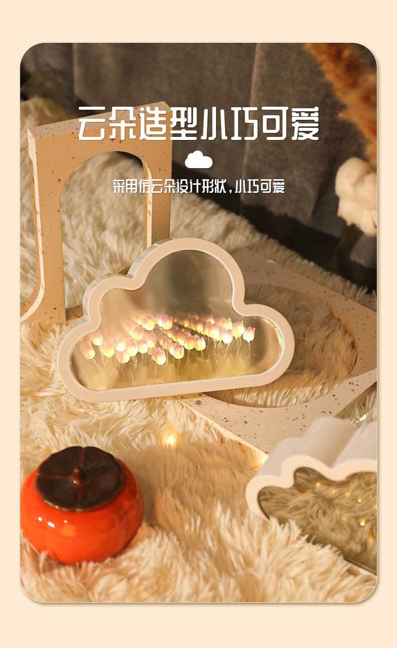 Diy hecho a mano nube tulipán espejo luz nocturna adornos luminosos regalo creativo regalo del Día de la Madre