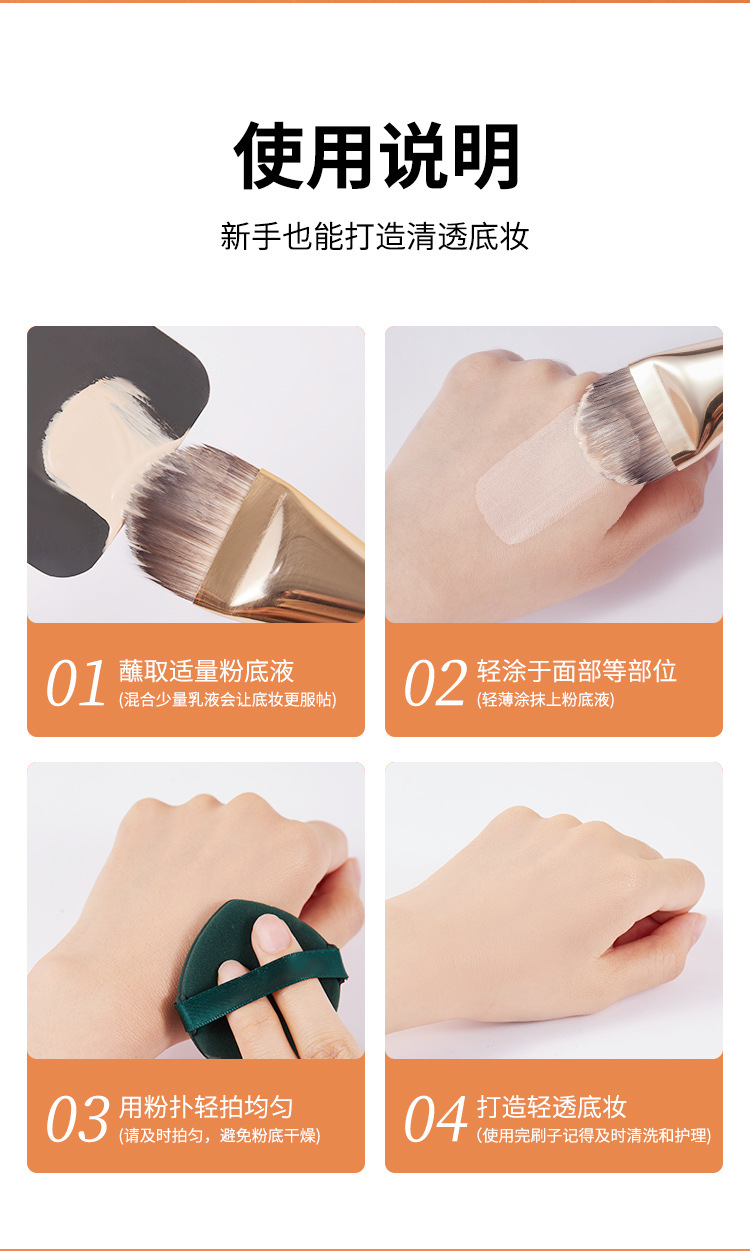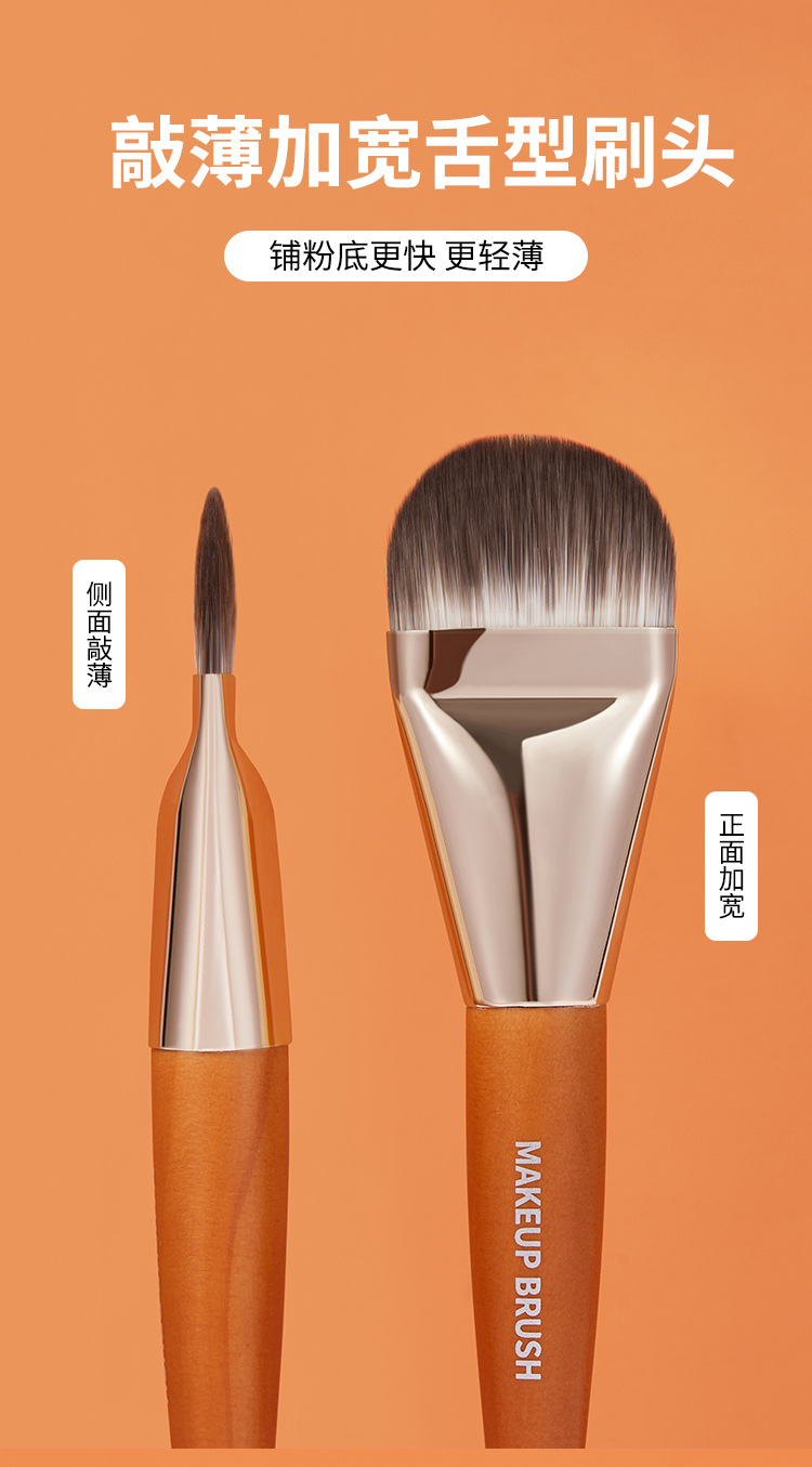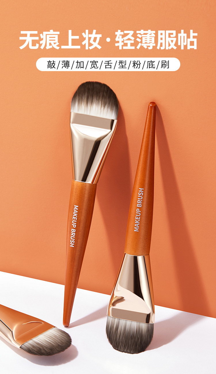 Xierui GECOMO Brocha para base en forma de lengua, brocha de maquillaje sin rastro, ultrafina, de cerdas suaves, para principiantes