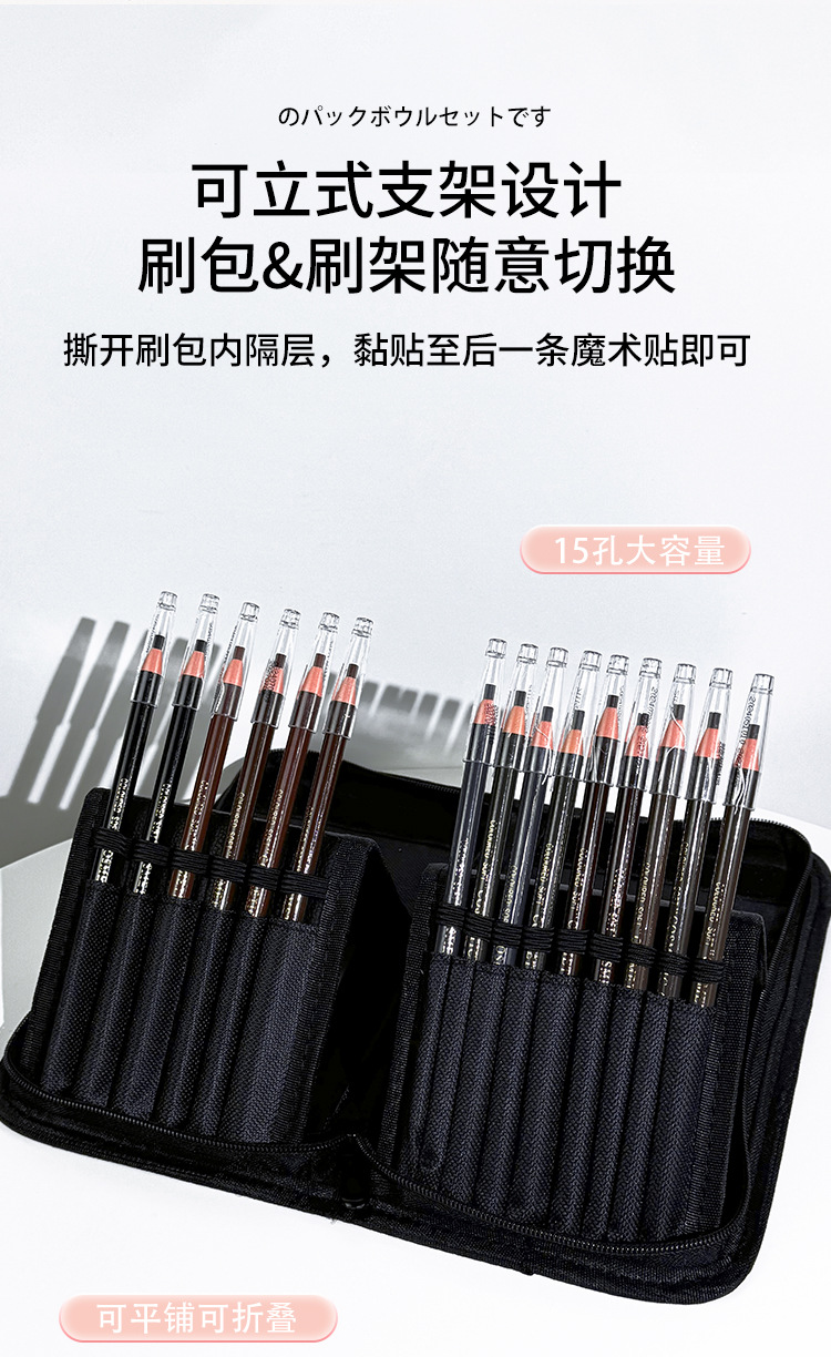 Bolsa de almacenamiento para lápices de cejas, bolsa vertical para brochas de maquillaje, soporte de exhibición portátil para herramientas de artista de tatuajes, bolsa plegable, estuche para bolígrafos