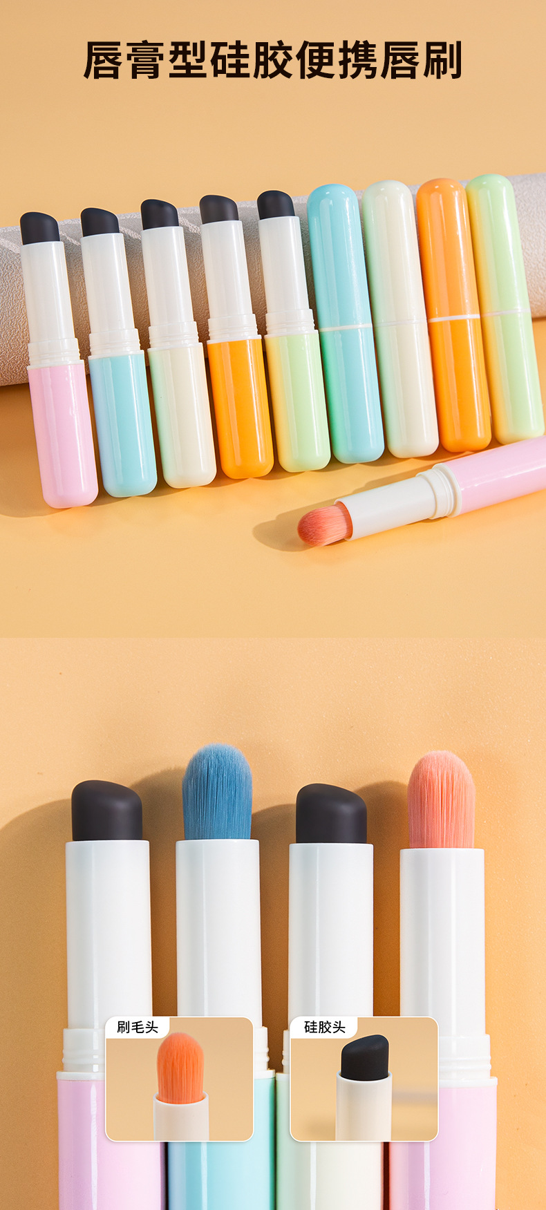 Lápiz labial en forma de cepillo de labios de silicona retráctil Q suave portátil a prueba de polvo mini lápiz labial brillo de labios floreciente cepillo de maquillaje con tapa