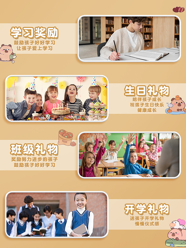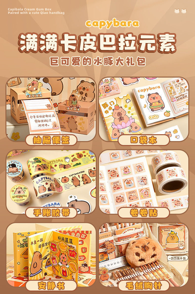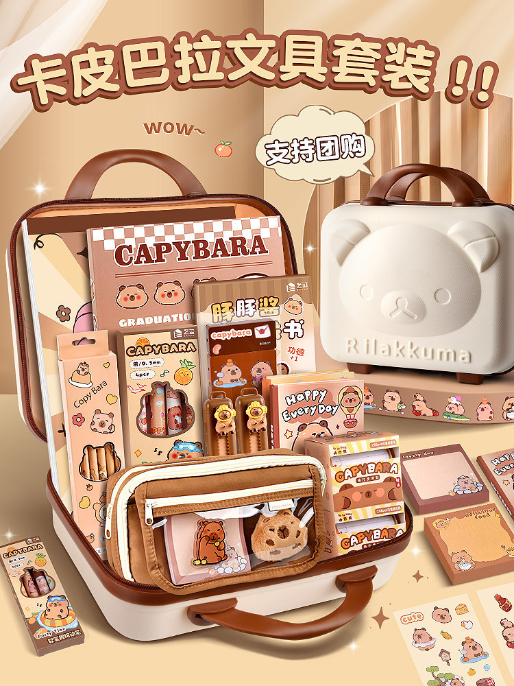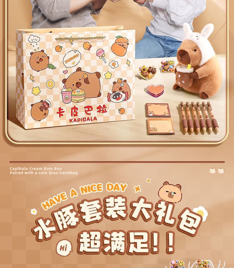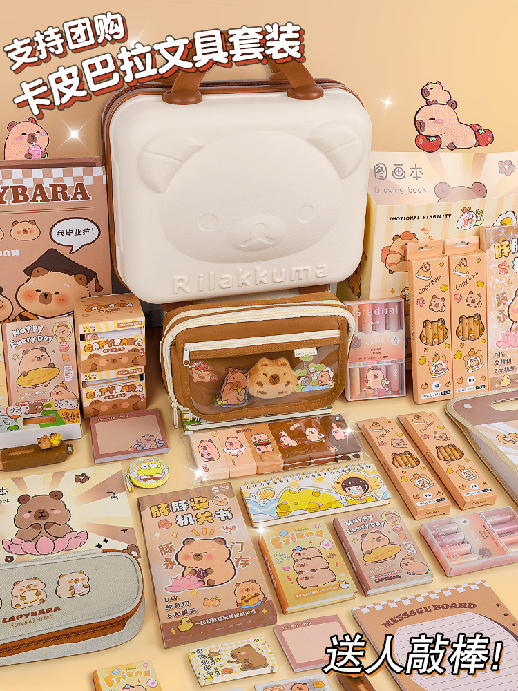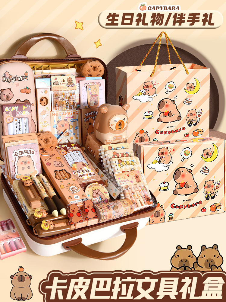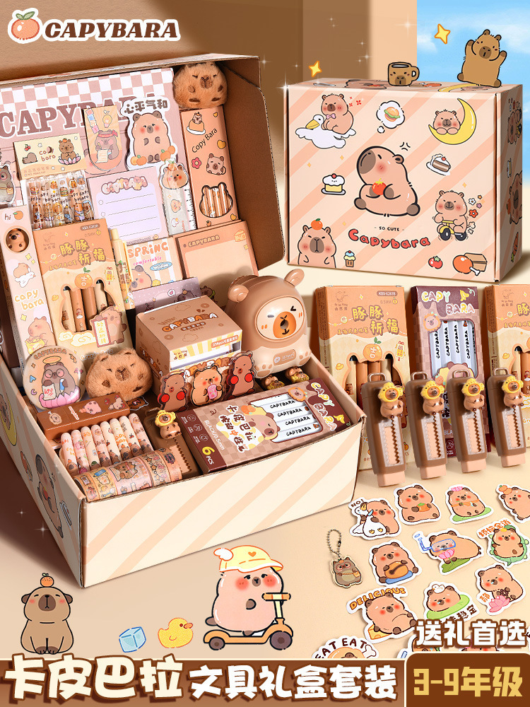 Paquete de regalo de regreso a clases para estudiantes de primaria, caja de regalo con artículos de papelería educativos, set de capibara, pegamento en crema, agenda