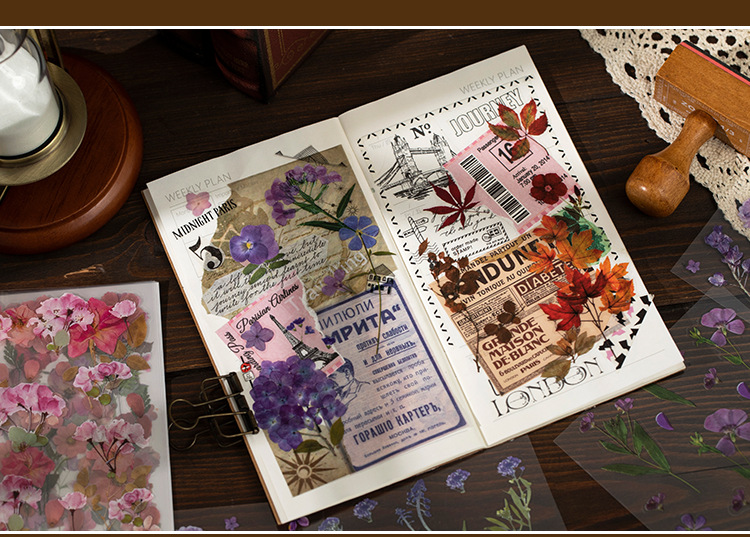 Yuxian shanye melodía pet sticker book retro estilo flor simulación material diario marcador decoración base collage