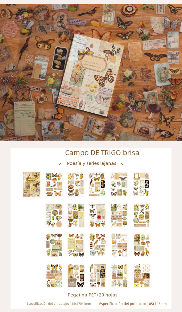Sueño danza PET pegatinas este poema y distante serie retro diario decoración materiales 20 piezas en 4 tipos