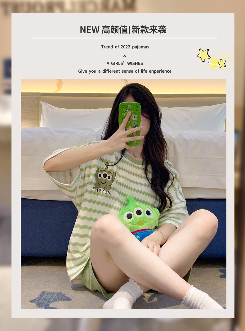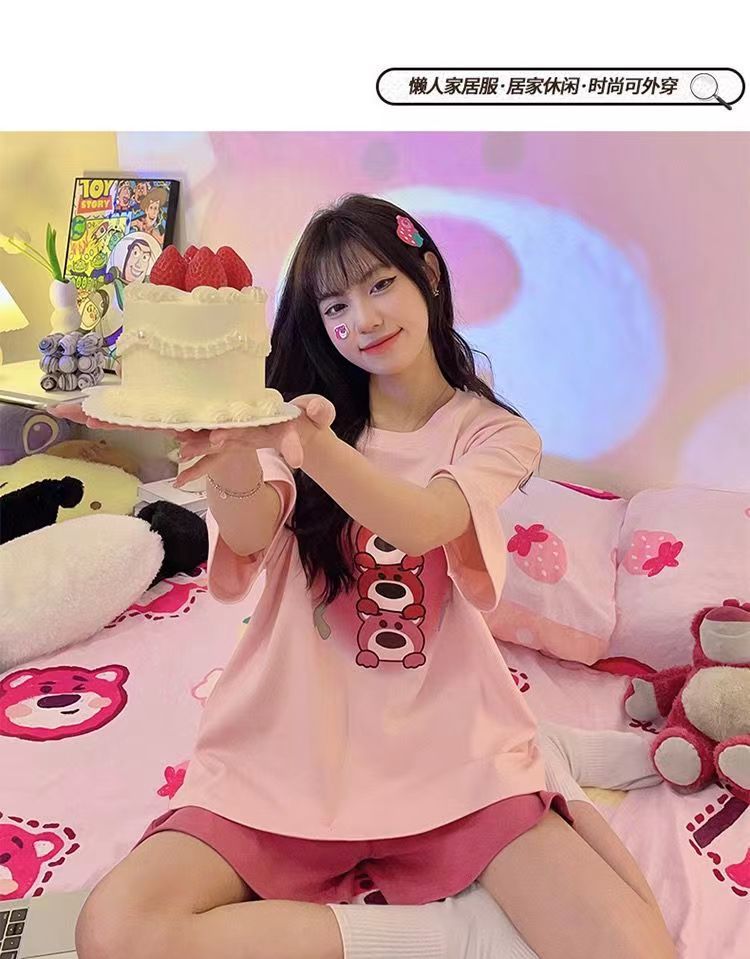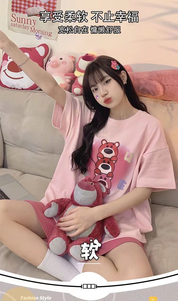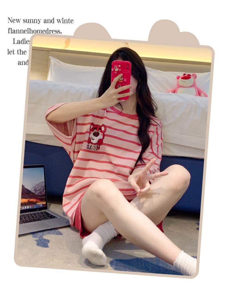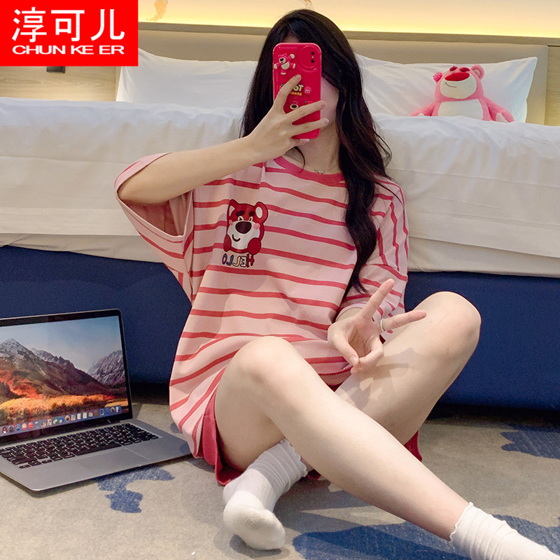 Verano 2024 pijamas de manga corta para mujeres estudiantes sueltas más tamaño lindo desgaste del hogar traje de dos piezas primavera y otoño verano