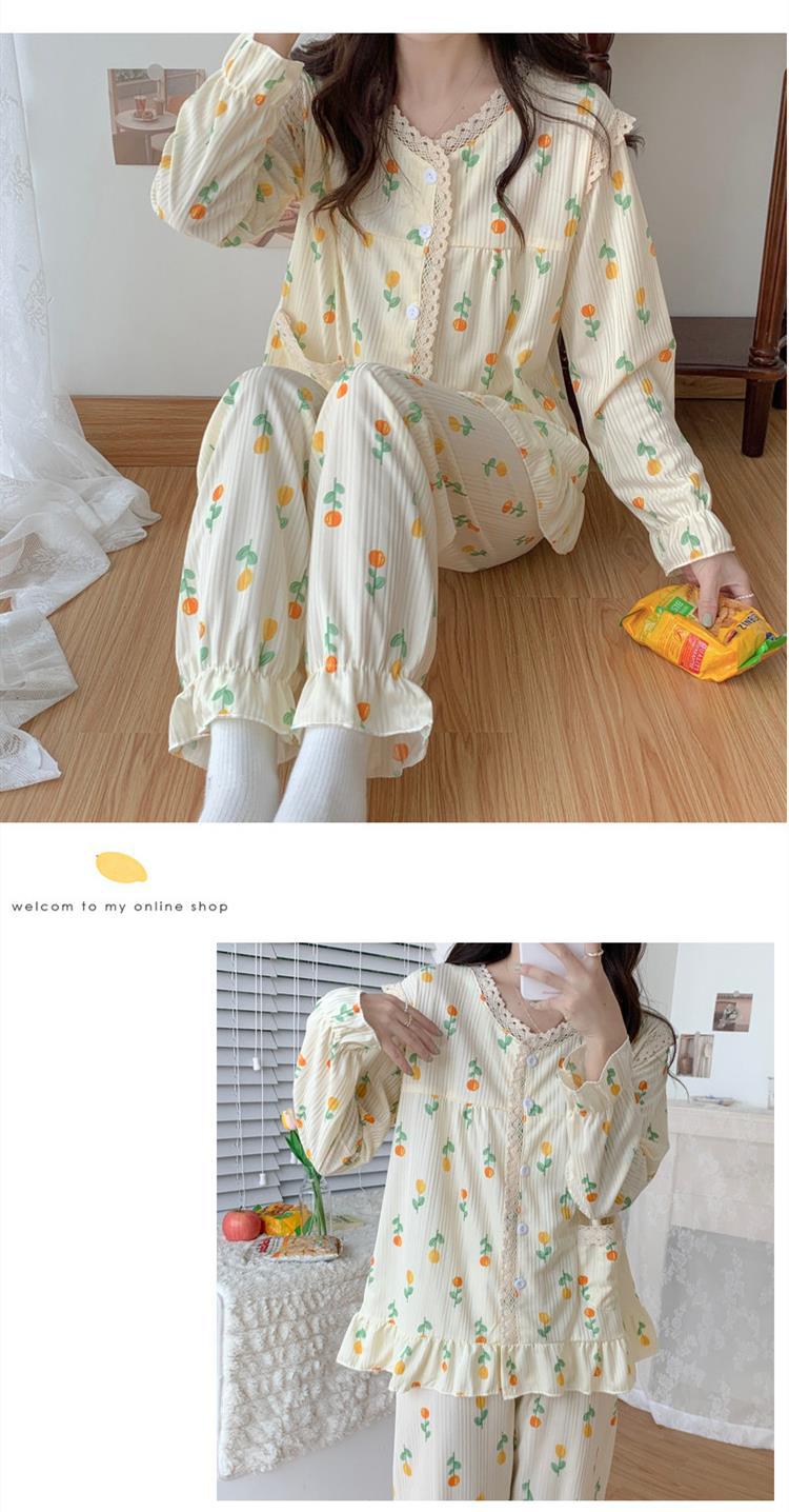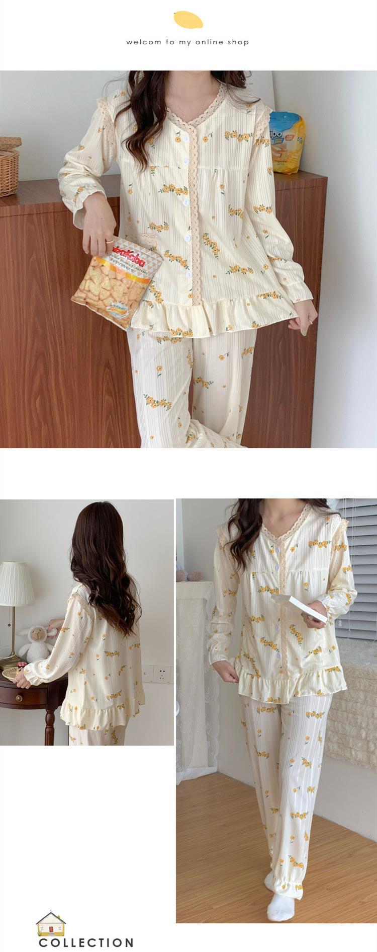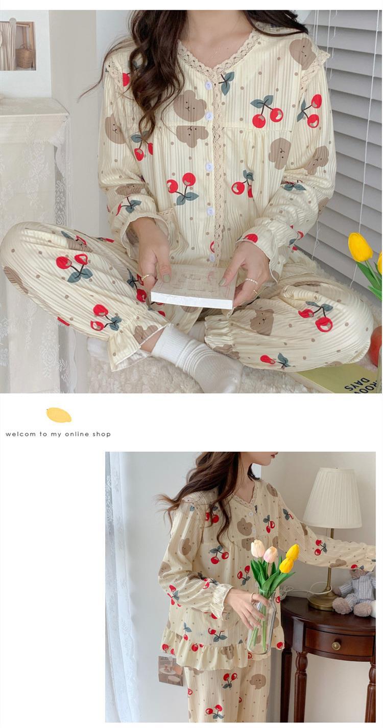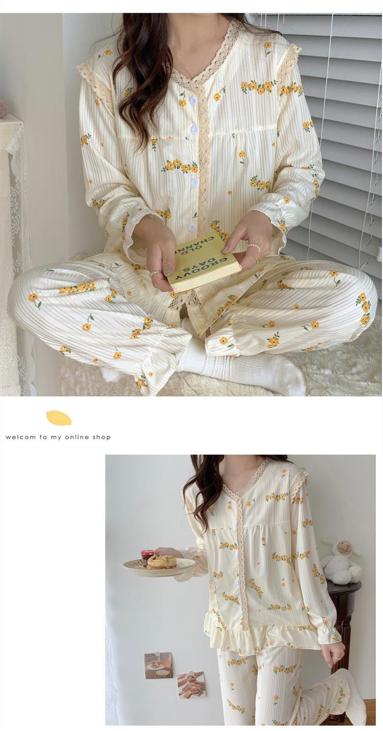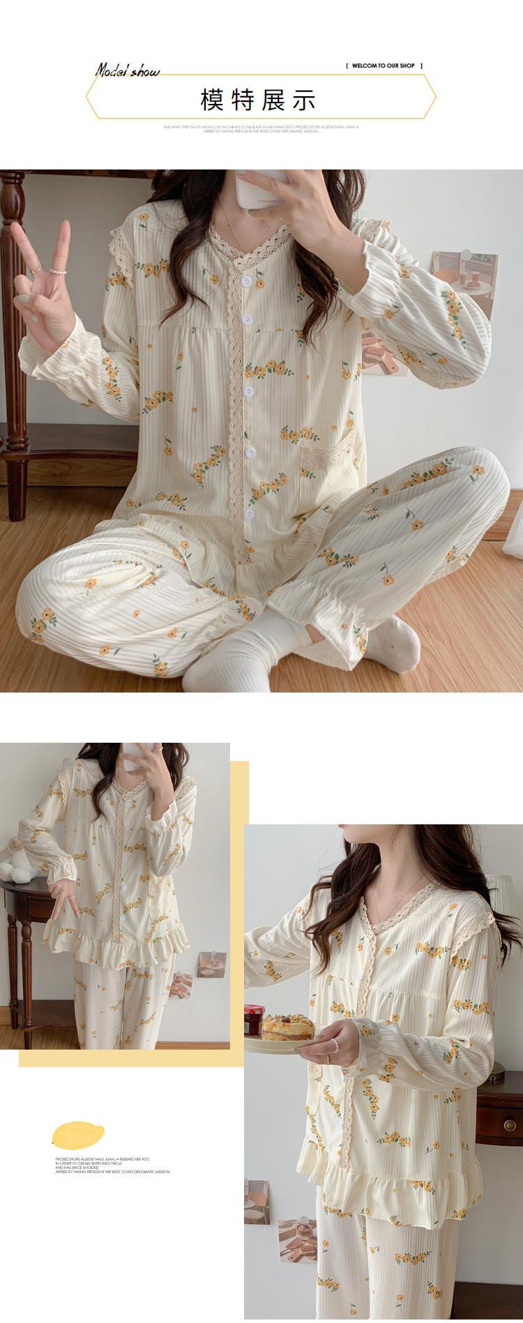 Pijamas de Manga Larga para Otoño e Invierno con Relleno en el Pecho para Mujer, Estilo Coreano 2025, Lindo Traje con Flores Pequeñas, Ropa de Dormir para Estudiantes