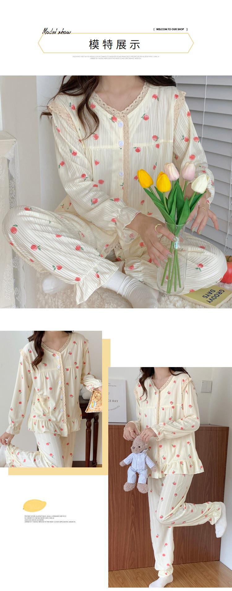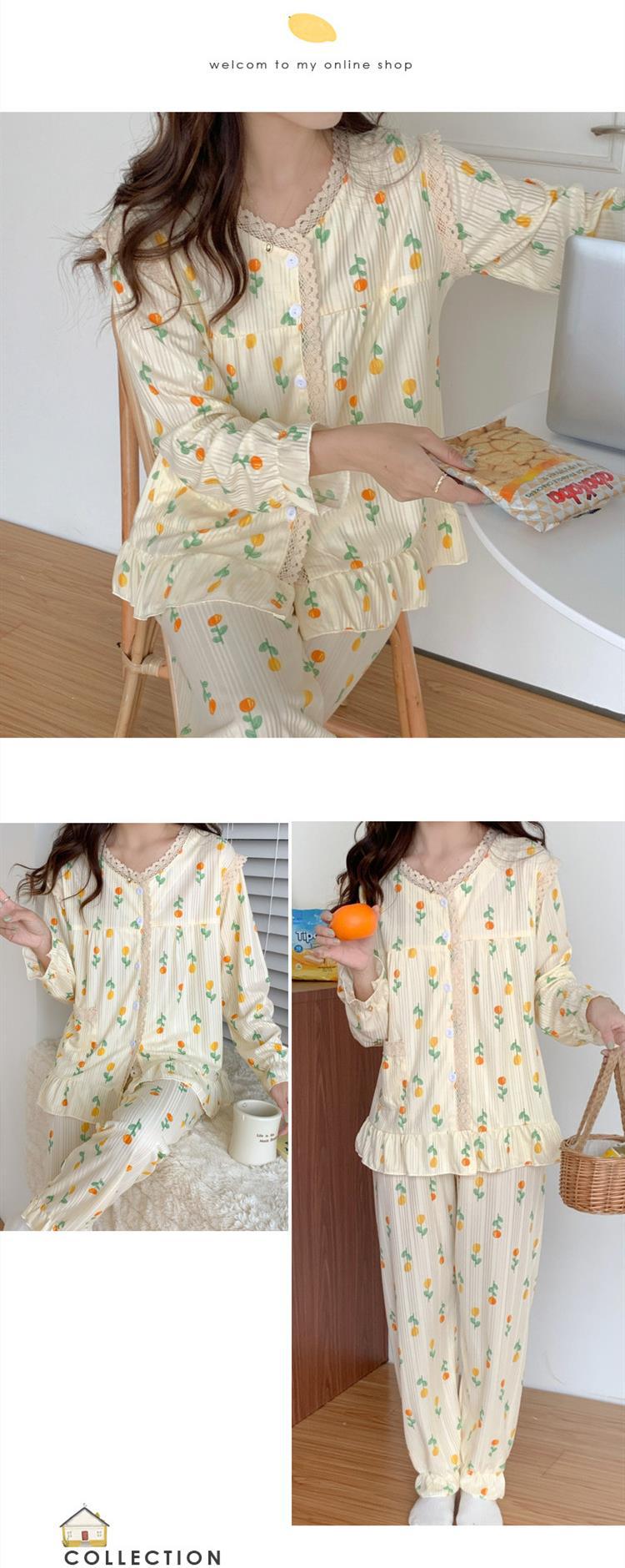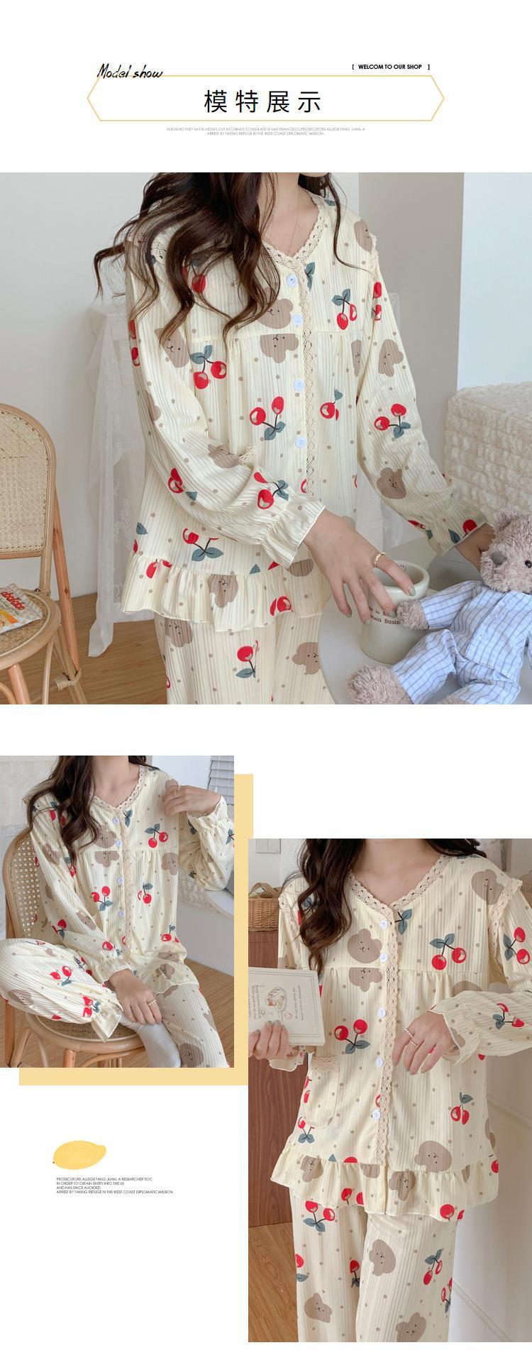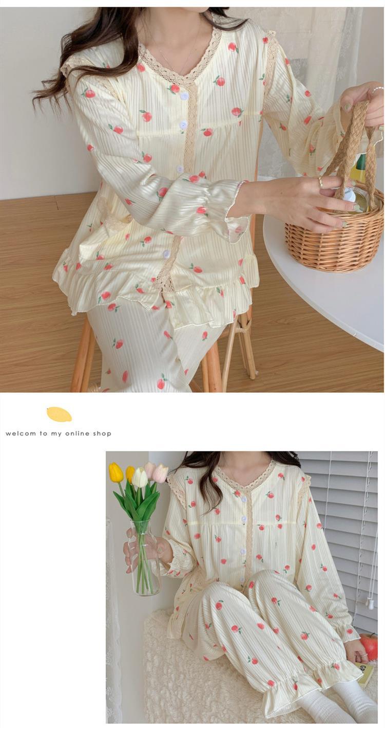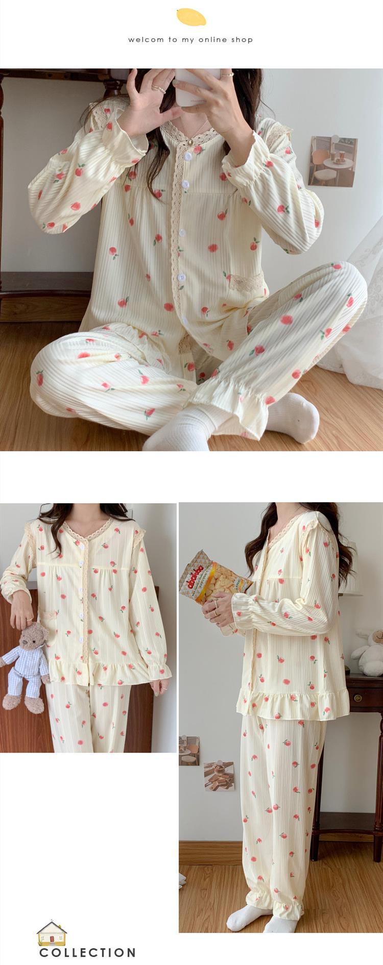 Pijamas de Manga Larga para Otoño e Invierno con Relleno en el Pecho para Mujer, Estilo Coreano 2025, Lindo Traje con Flores Pequeñas, Ropa de Dormir para Estudiantes