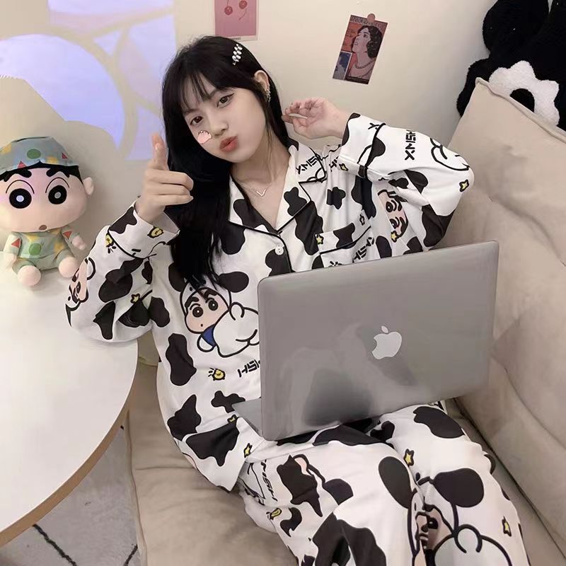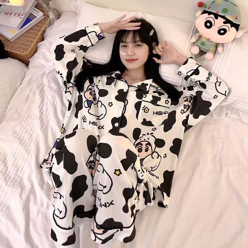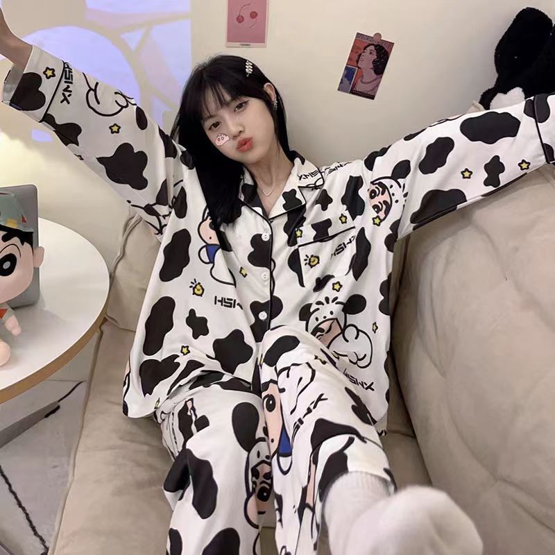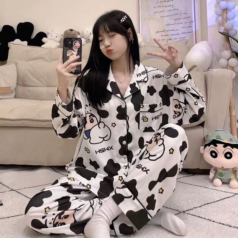 Nueva primavera y otoño pijamas japoneses de las mujeres lindo crayón Xiaoxin Otoño e Invierno suelta manga larga casa desgaste traje Pijamas