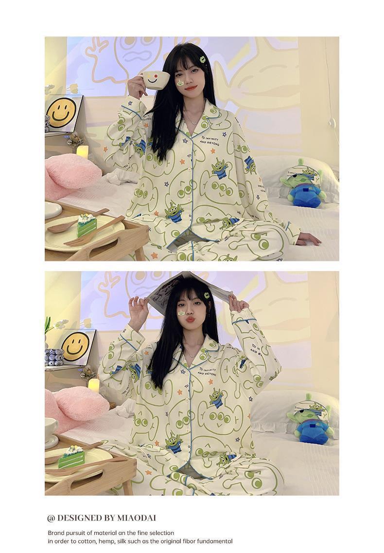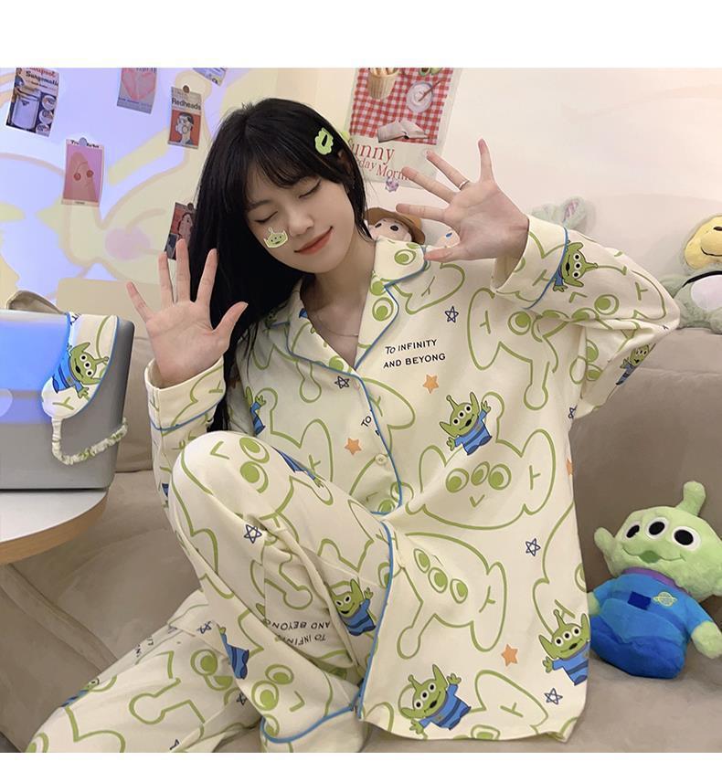 Otoño e Invierno pijamas de manga larga para las mujeres 2023 Nuevo ins estilo coreano dibujos animados ojo grande linda chica casa desgaste Pijamas
