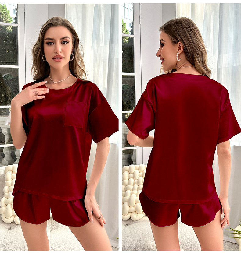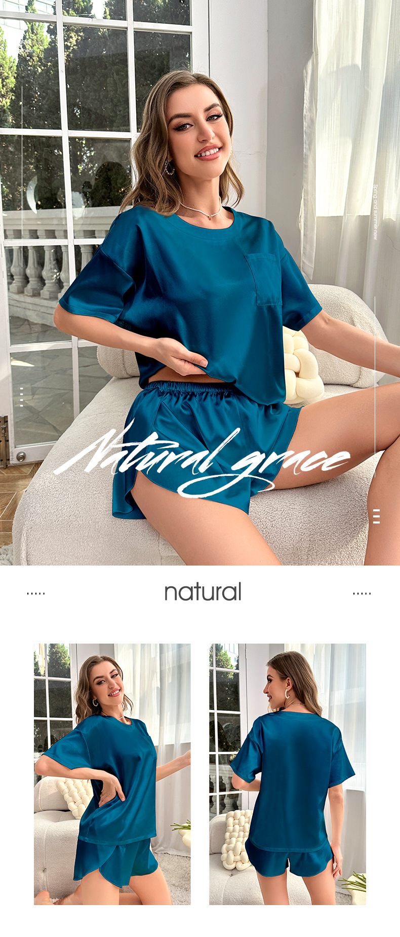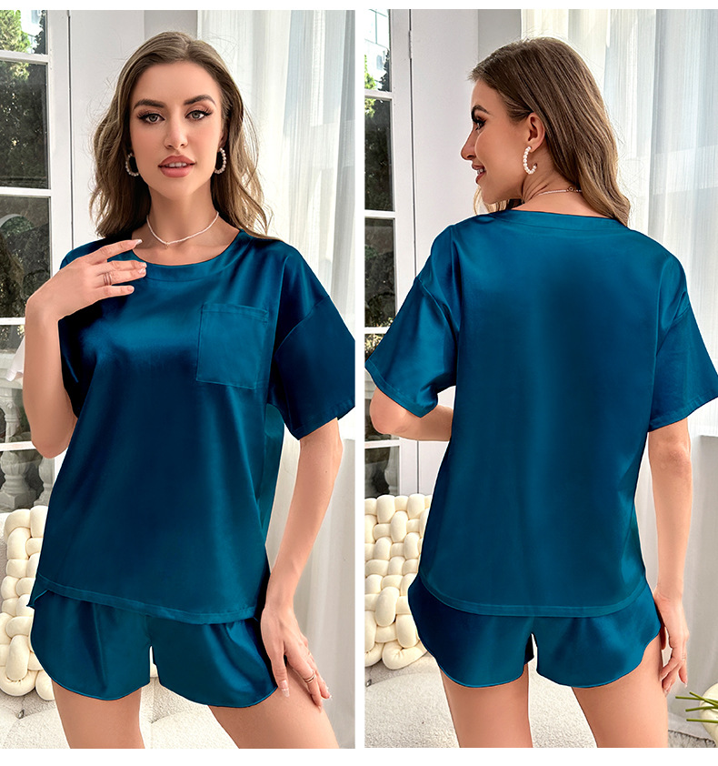 Yaoting Amazon pijamas de seda de hielo de las mujeres de verano de color sólido pantalones cortos de manga corta de las mujeres casuales ropa de casa traje 3157
