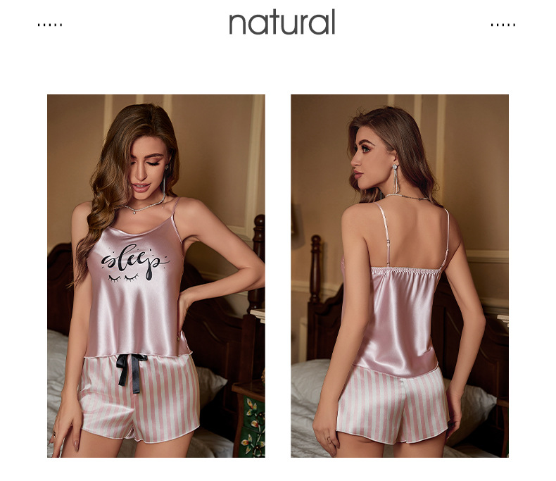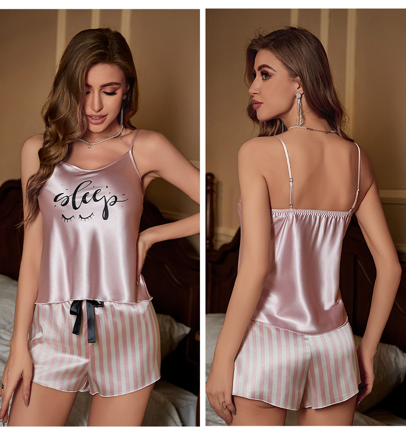 Amazon nuevo pijamas de verano de las mujeres a rayas de seda de hielo de satén de dos piezas traje tirantes shorts sexy homewear 3232