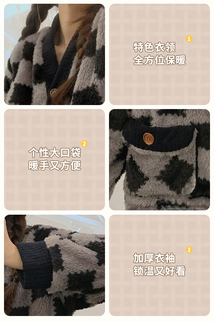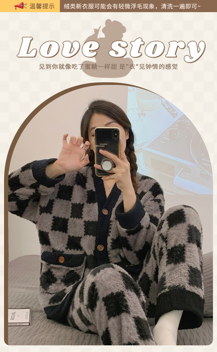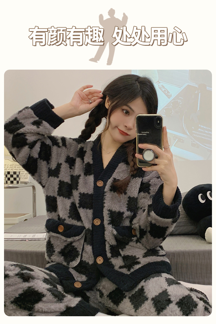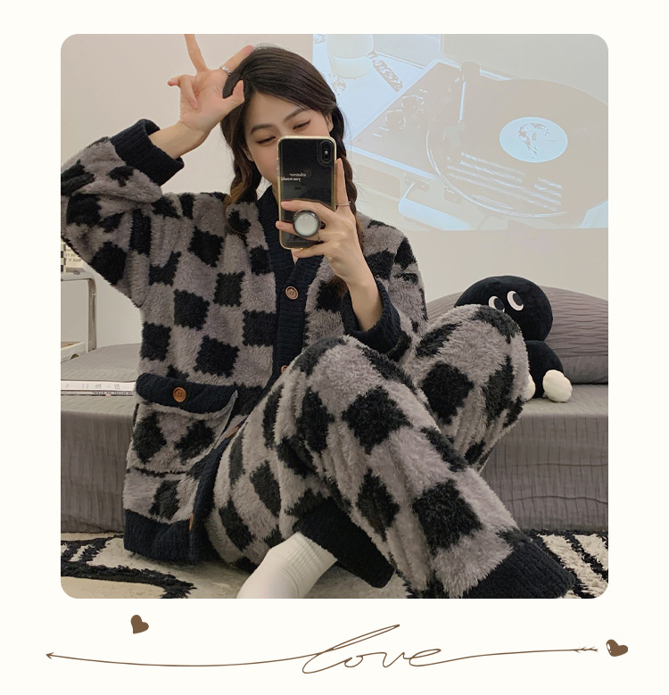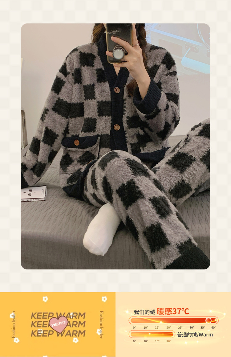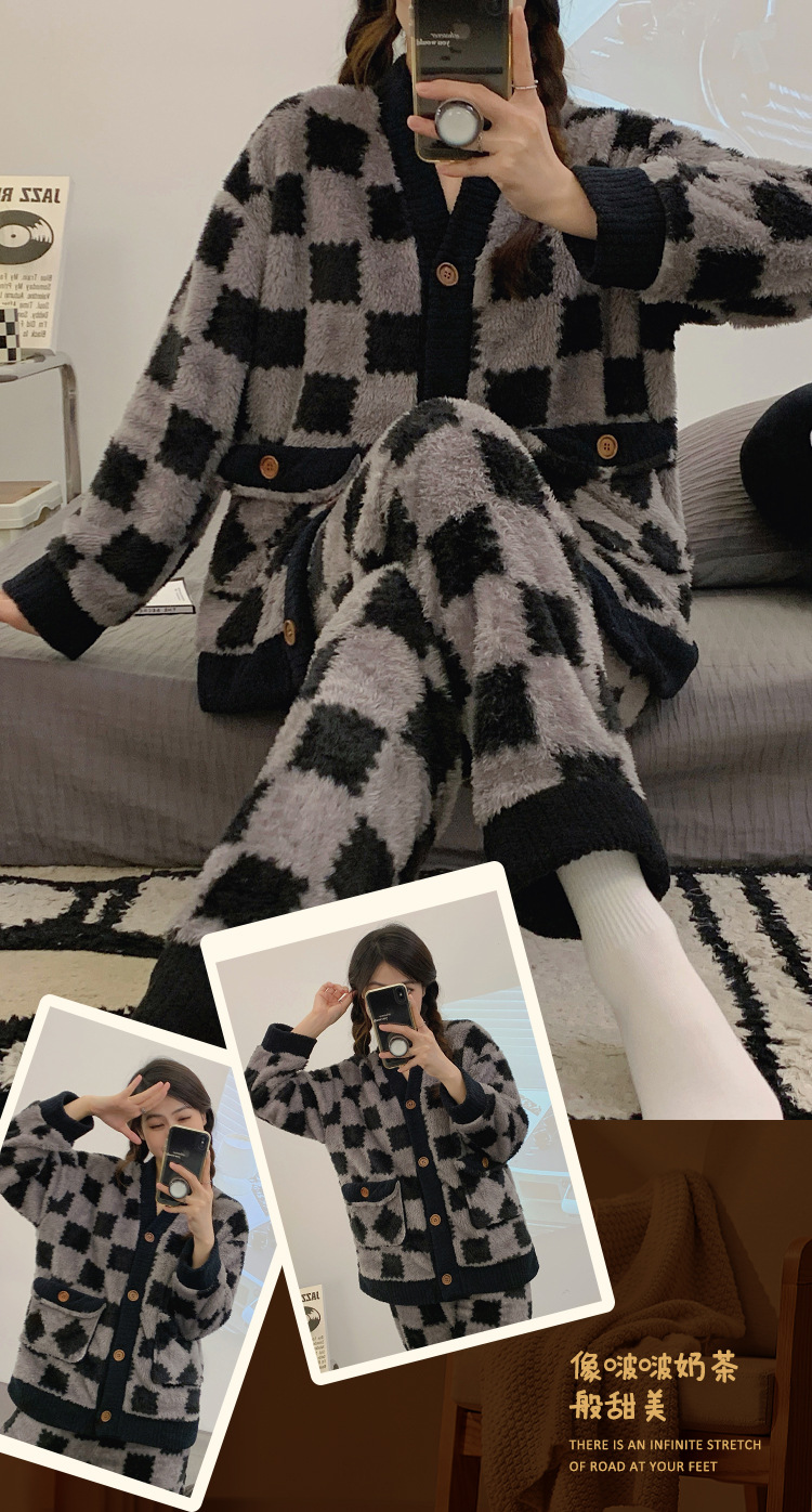 En stock transmisión en vivo con cantidad puede hablar de volumen de ejecución popular terciopelo engrosado estilo Chanel invierno cardigan engrosado pijamas traje de mujer