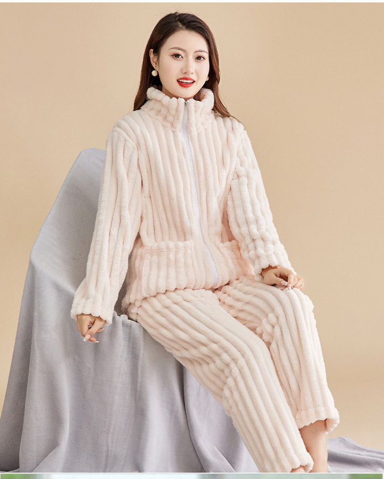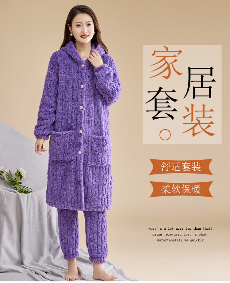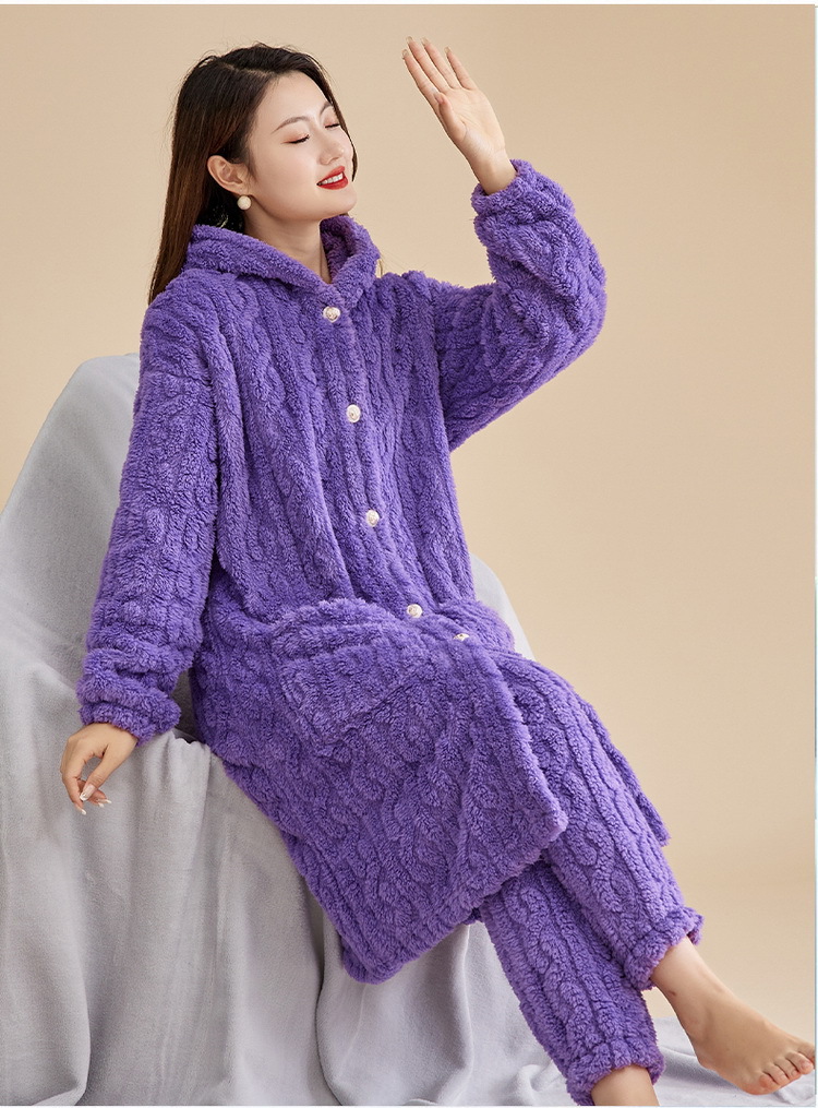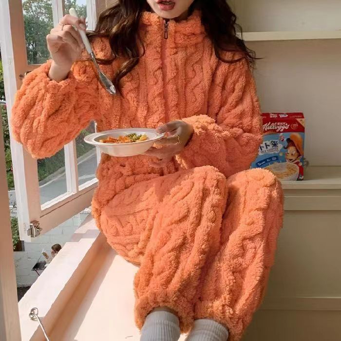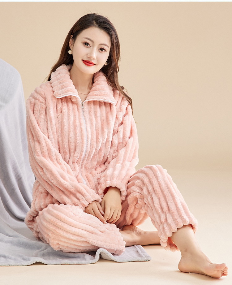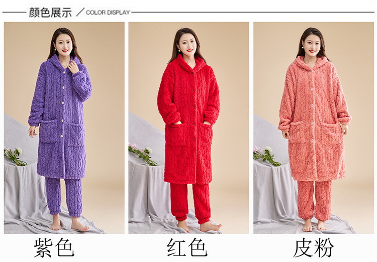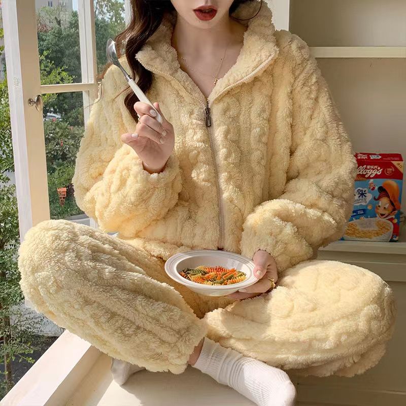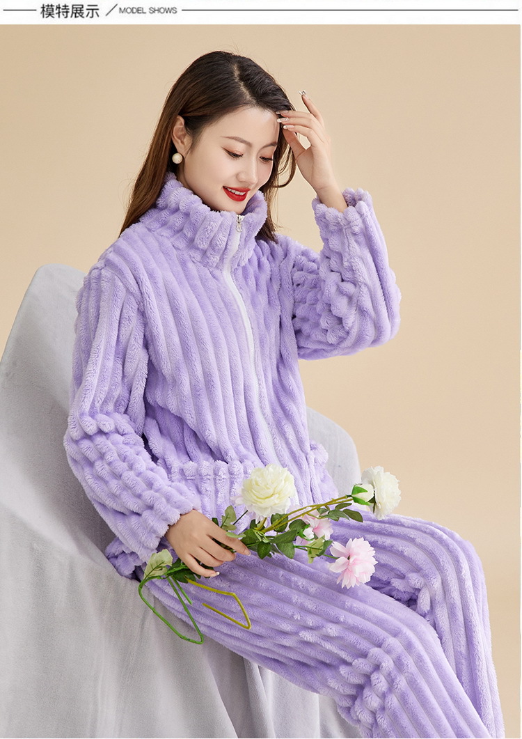Las mujeres de invierno engrosada franela pijamas nuevo traje cálido desgaste del hogar se puede usar fuera de otoño e invierno de lana de coral pijamas al por mayor