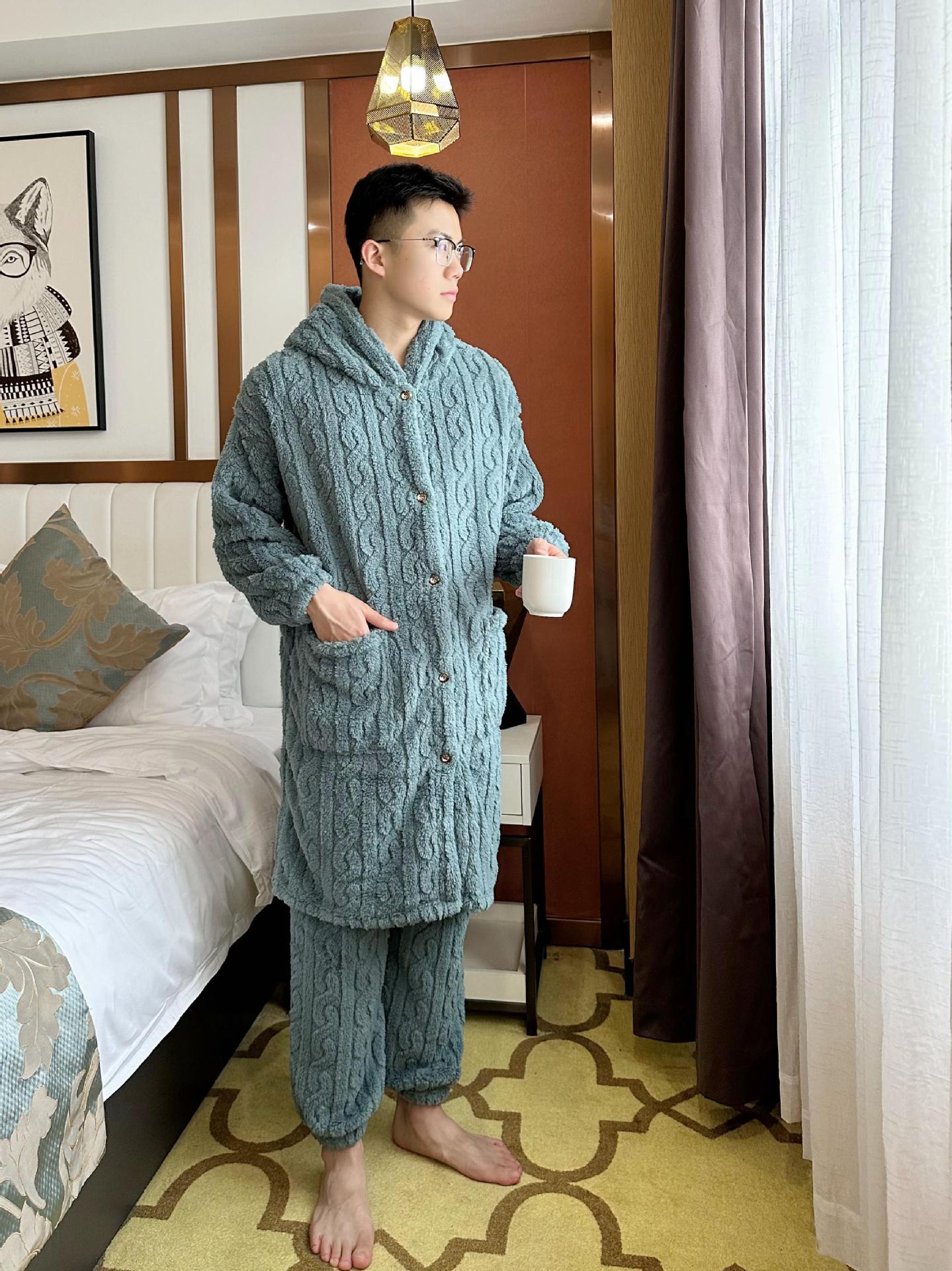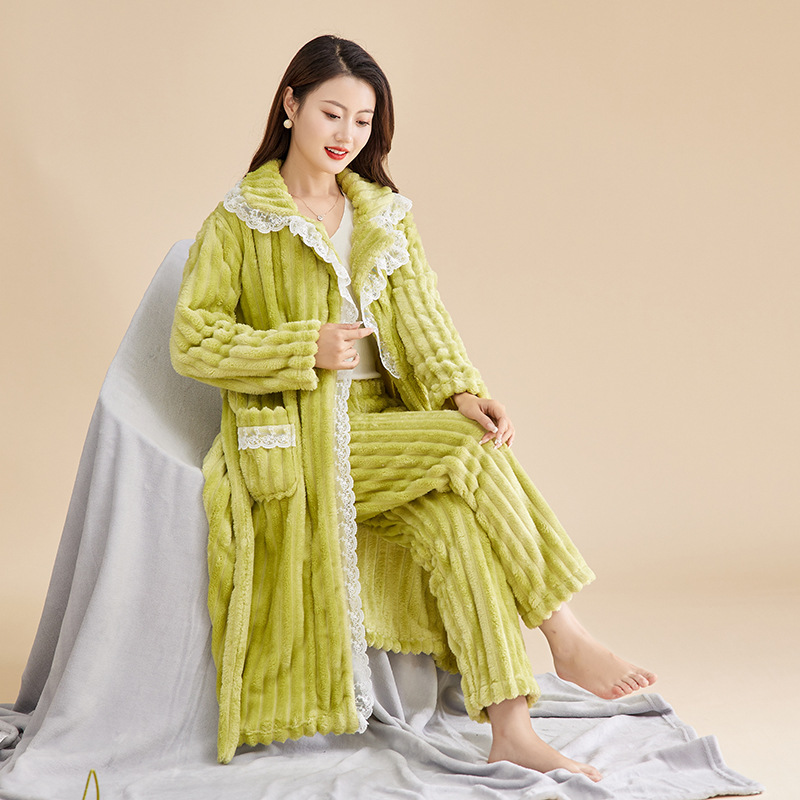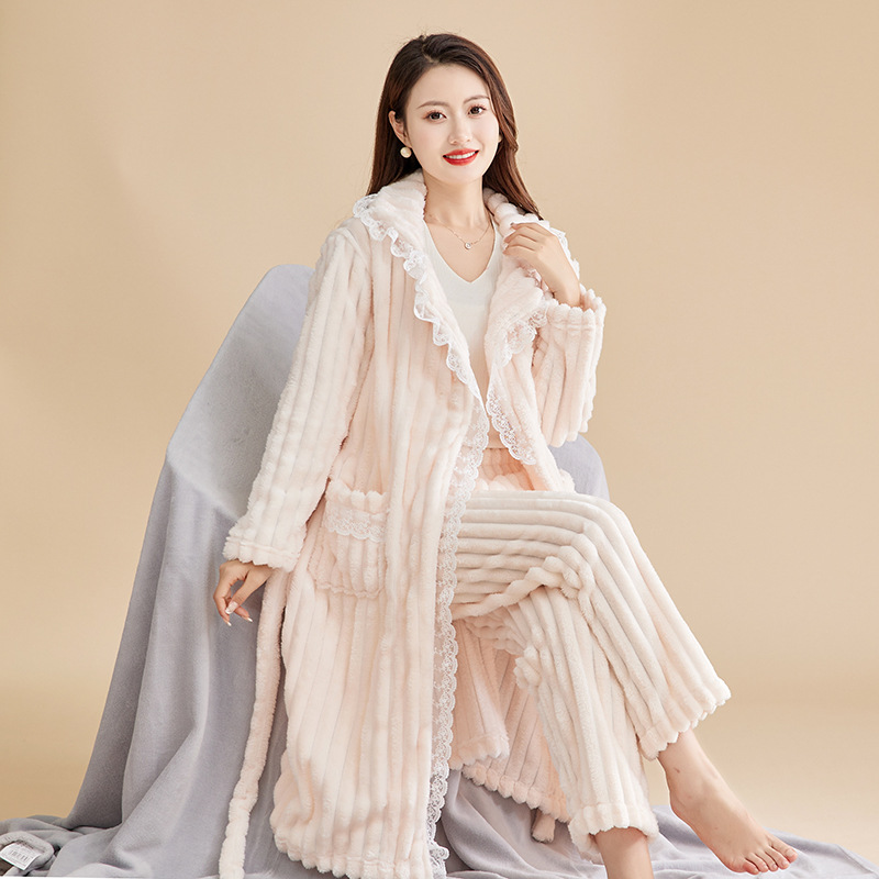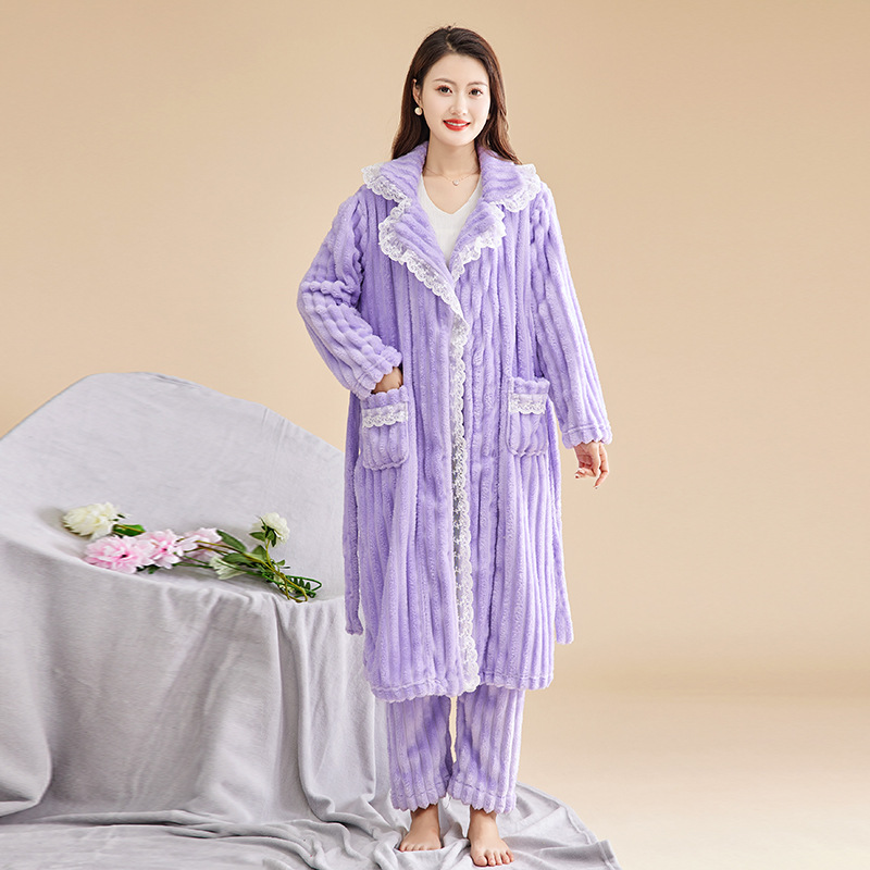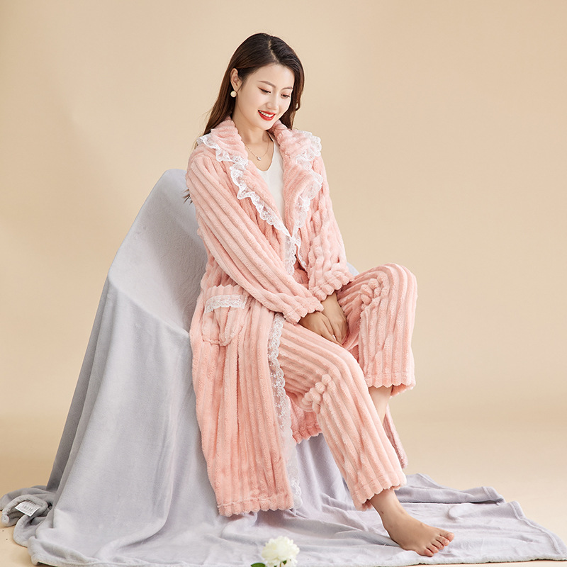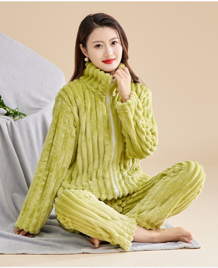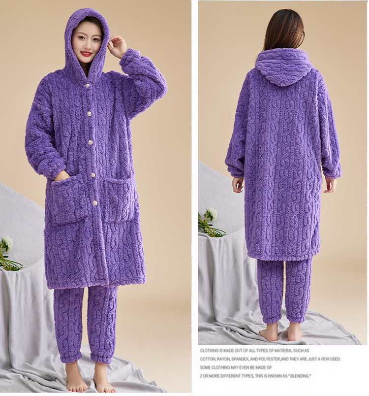 Las mujeres de invierno engrosada franela pijamas nuevo traje cálido desgaste del hogar se puede usar fuera de otoño e invierno de lana de coral pijamas al por mayor