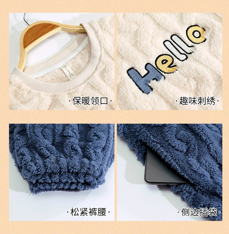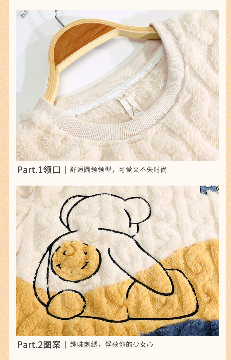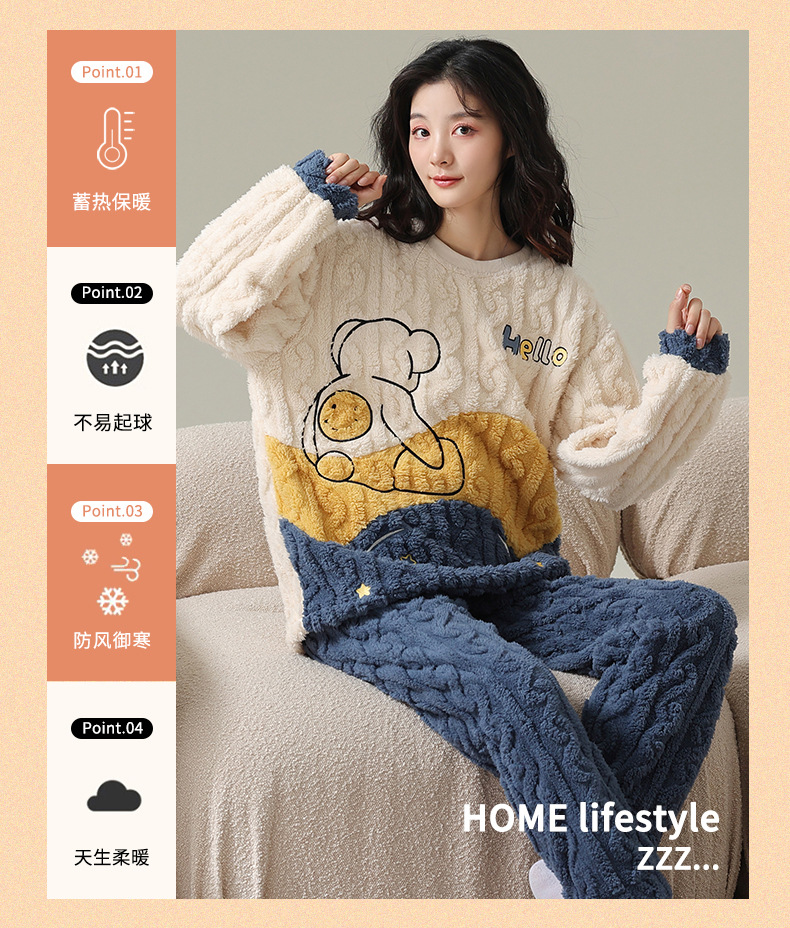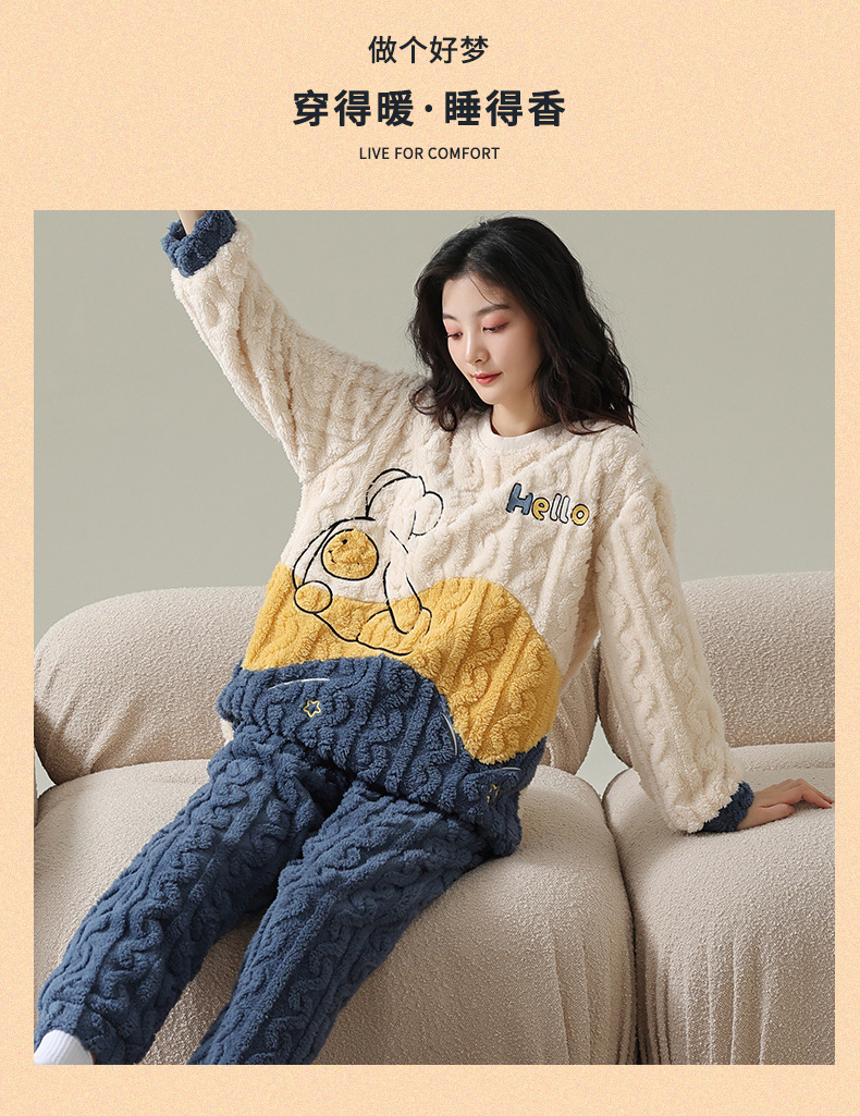 Pijamas de vellón de coral para mujer Otoño e Invierno engrosada franela forrada de vellón ropa para el hogar traje de dos piezas para mujer dibujos animados lindo