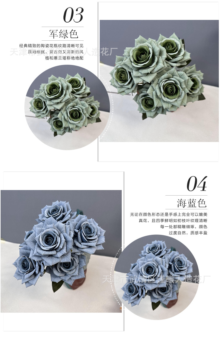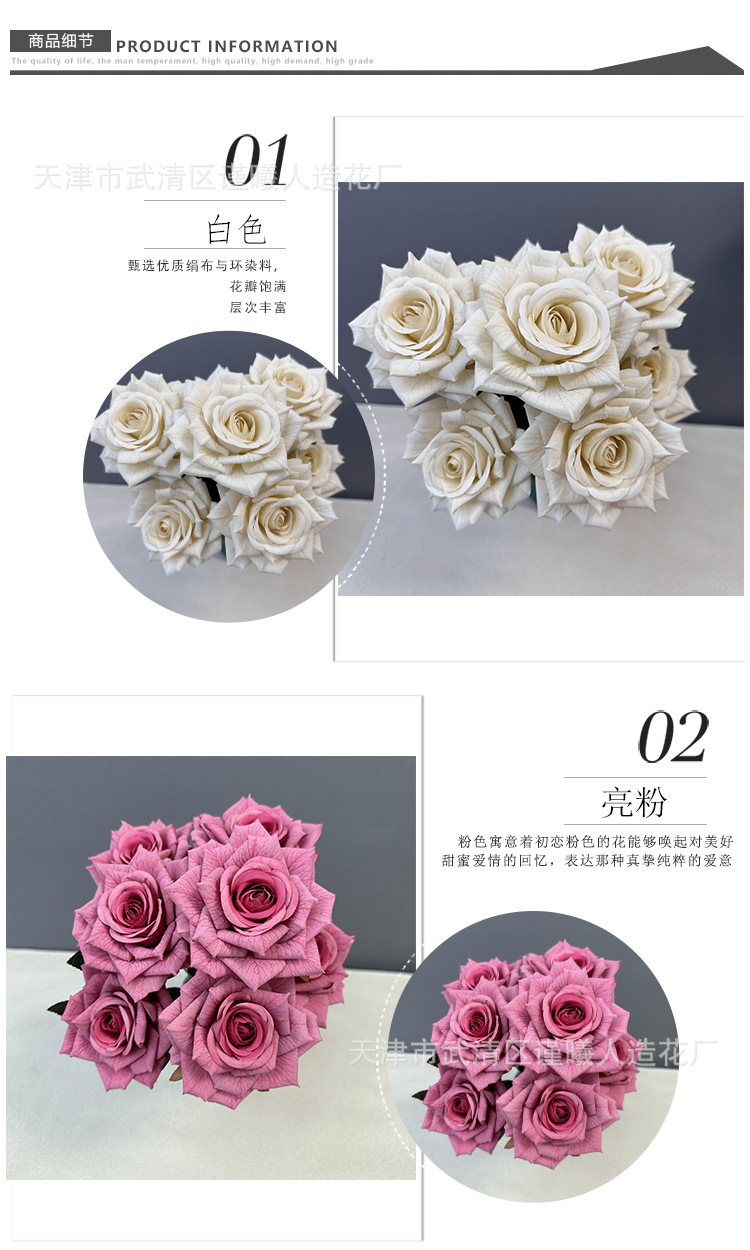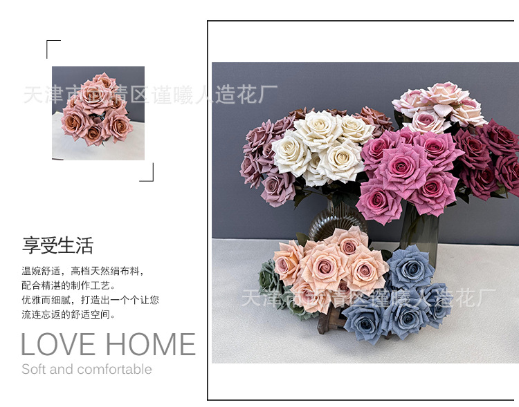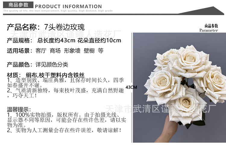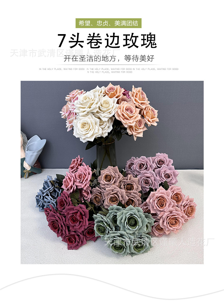 Flor artificial 7 Manta Rosa boda novia con flor hogar sala de estar decoración Flor de seda fotografía apoyos flor