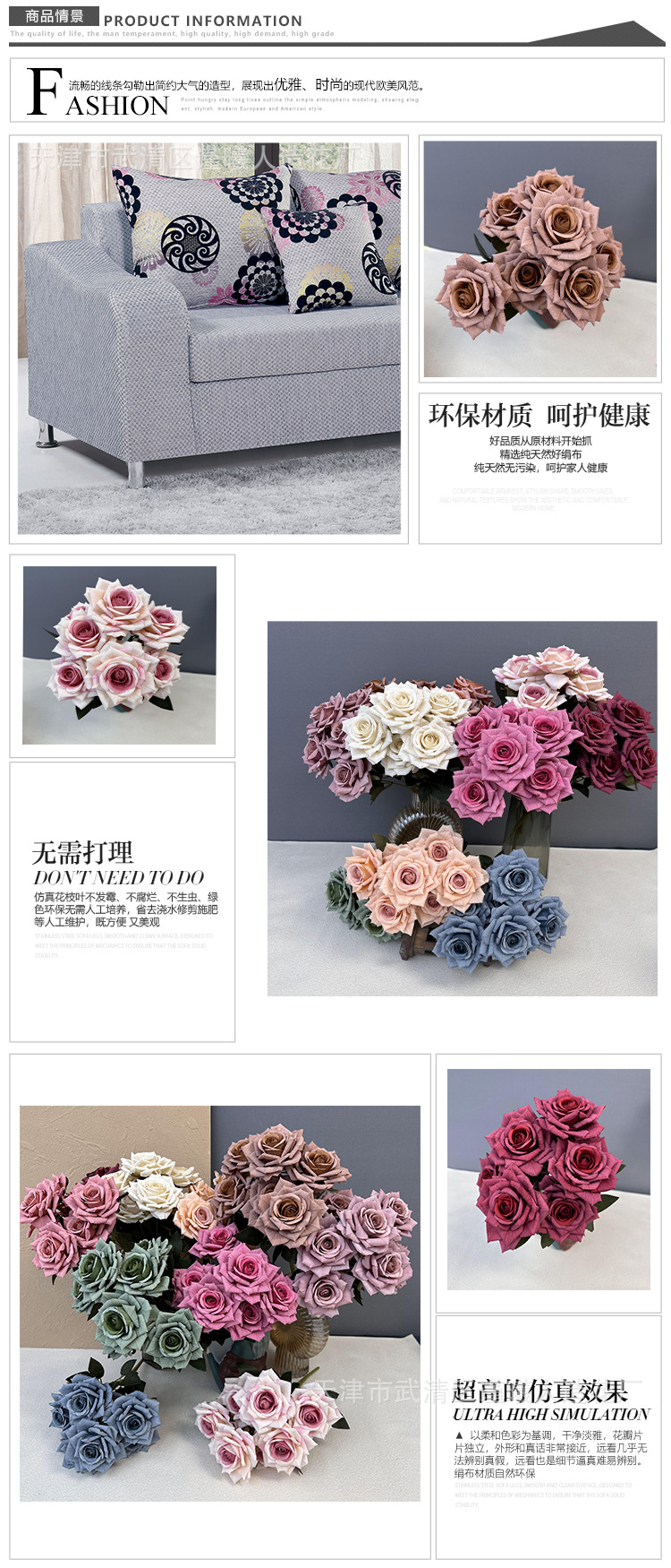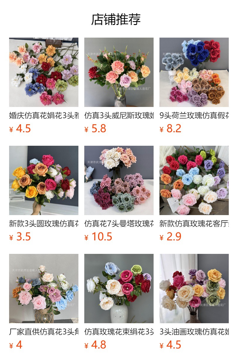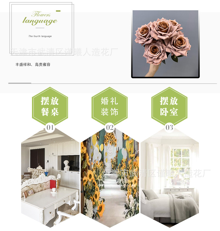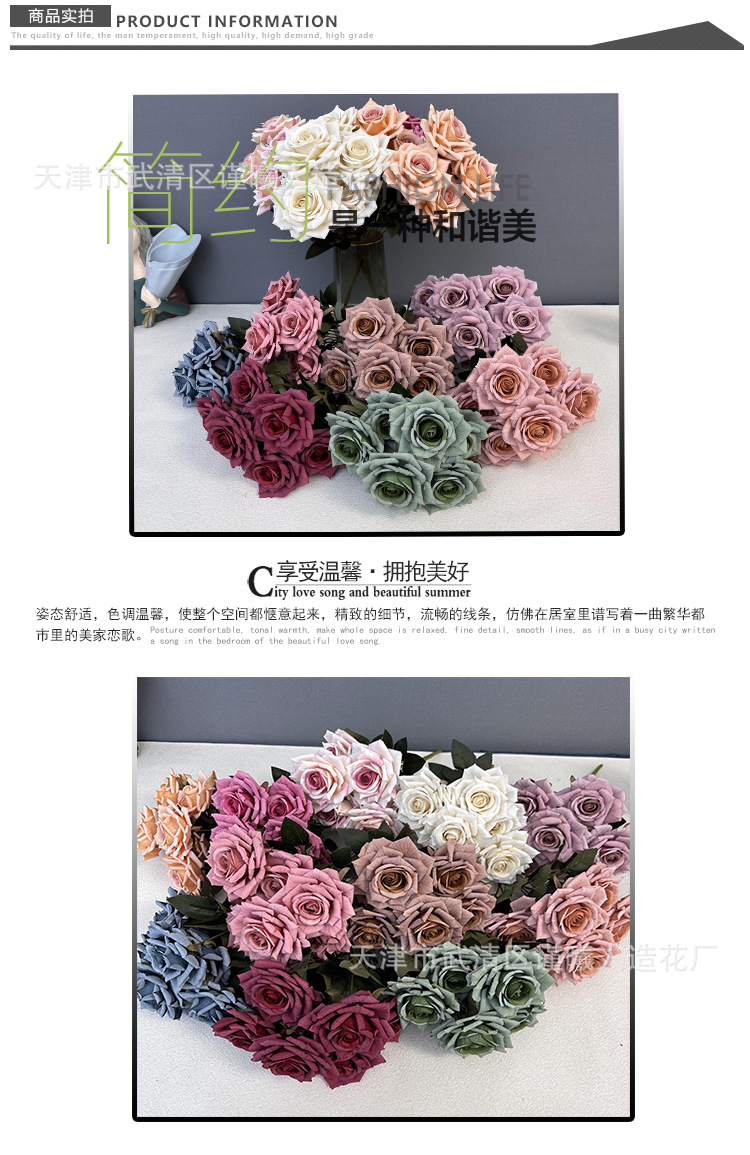 Flor artificial 7 Manta Rosa boda novia con flor hogar sala de estar decoración Flor de seda fotografía apoyos flor