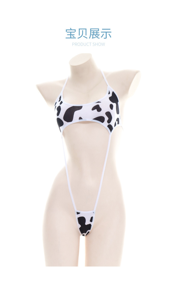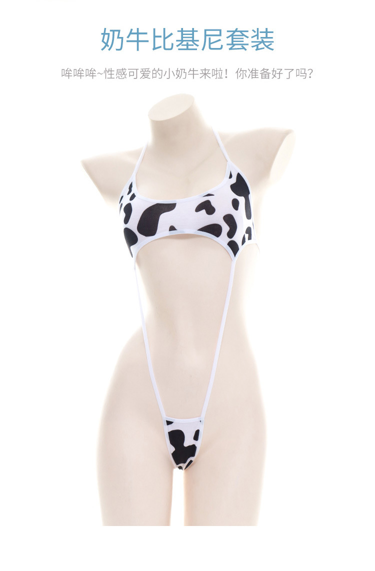 Ropa bidimensional lindo Polka Dot patrón de la vaca sexy encaje traje de baño split bikini traje S0393