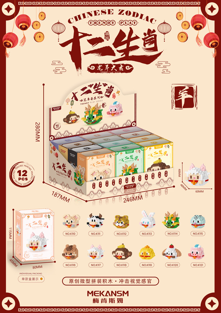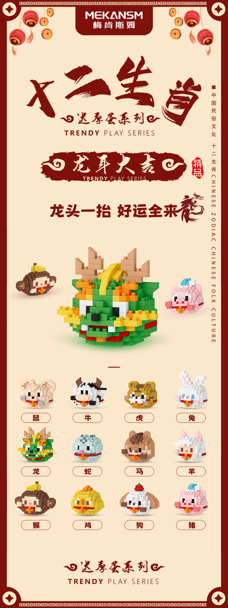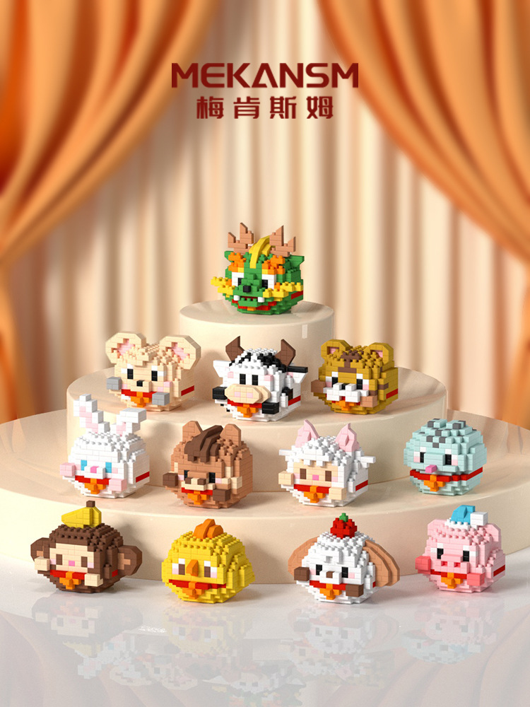 Mekensham Dragon año regalo doce Zodiaco bloques de construcción de partículas pequeñas grifo de juguete decoración de escritorio transfronteriza al por mayor
