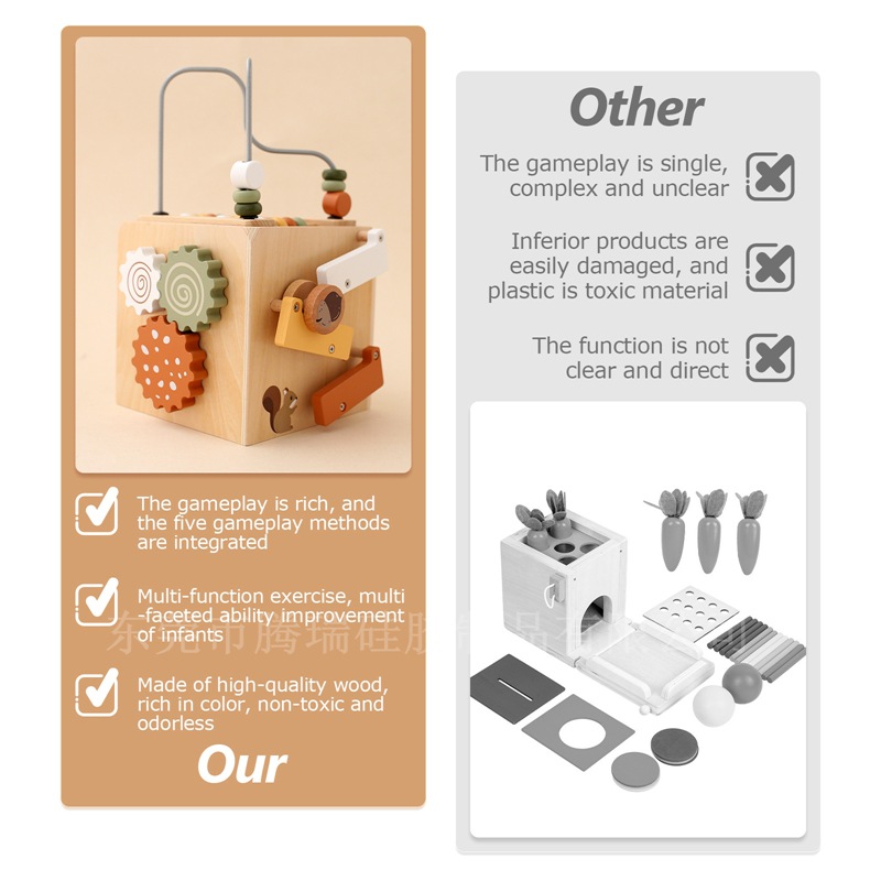 Amazon nueva forma de cuenta redonda a juego de juguete cinco en uno caja de madera ocupada juguete cognitivo educativo para niños