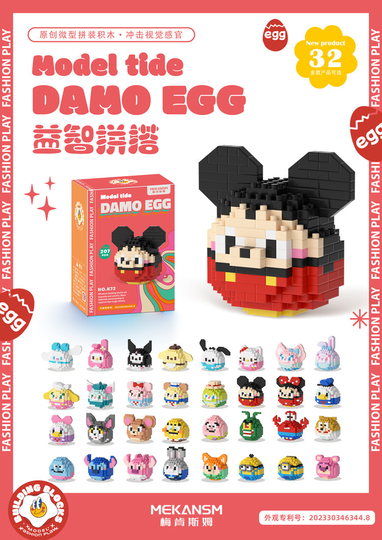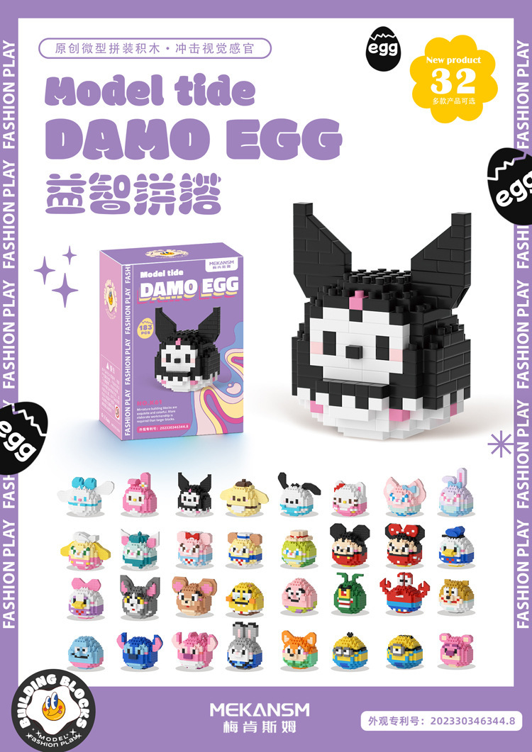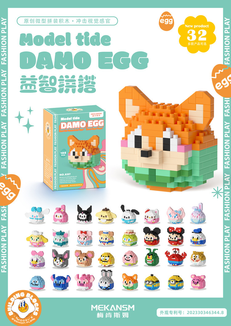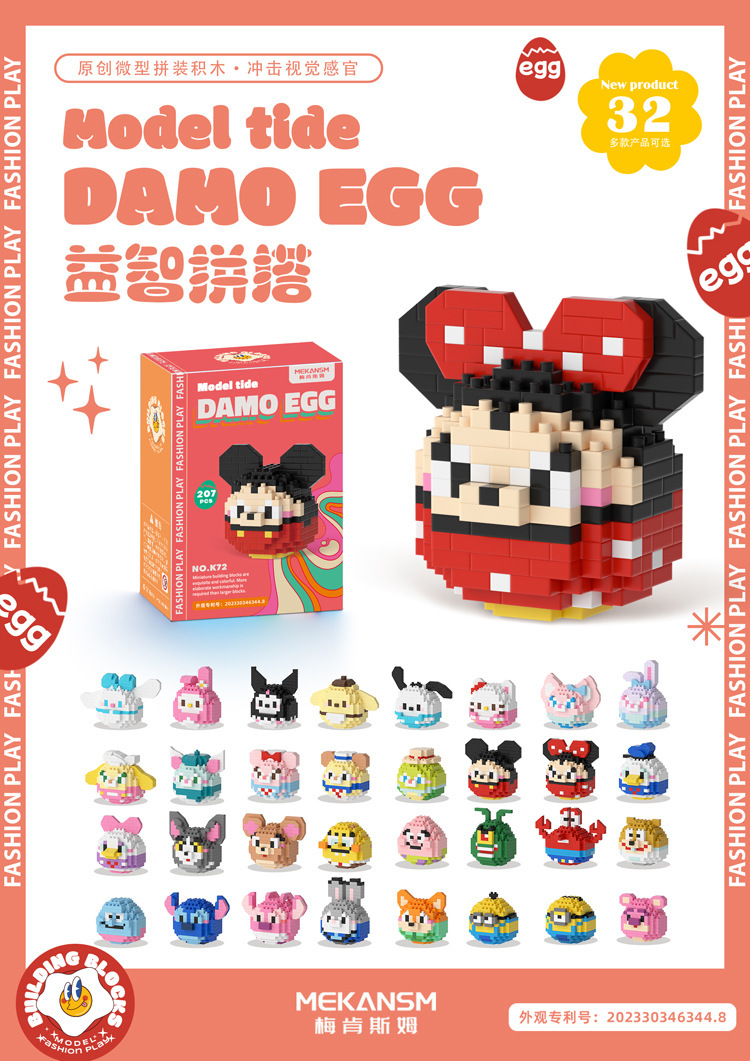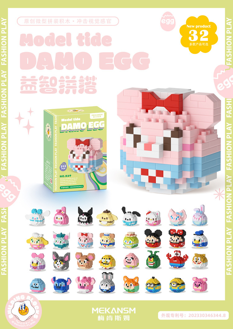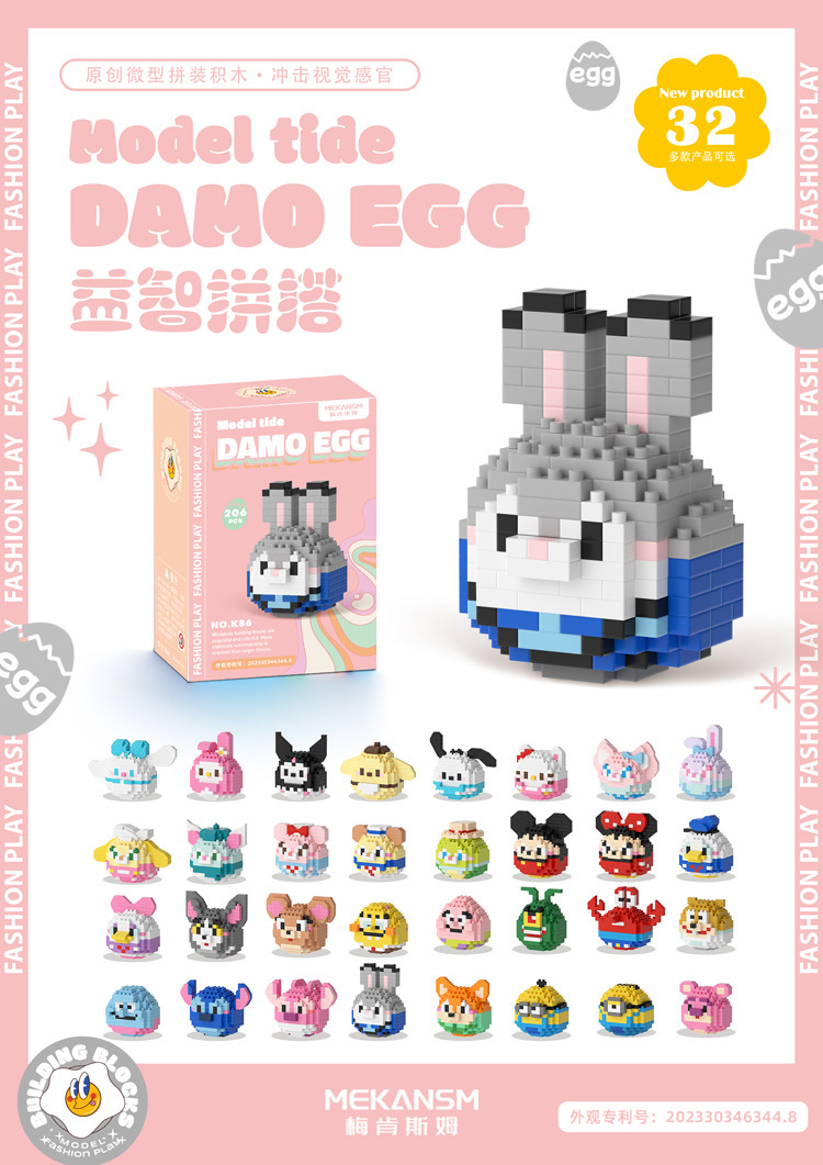 Compatible con LEGO dibujos animados Q versión muñeca Damo huevo Beier micro partículas de montaje educativo bloques juguete regalo