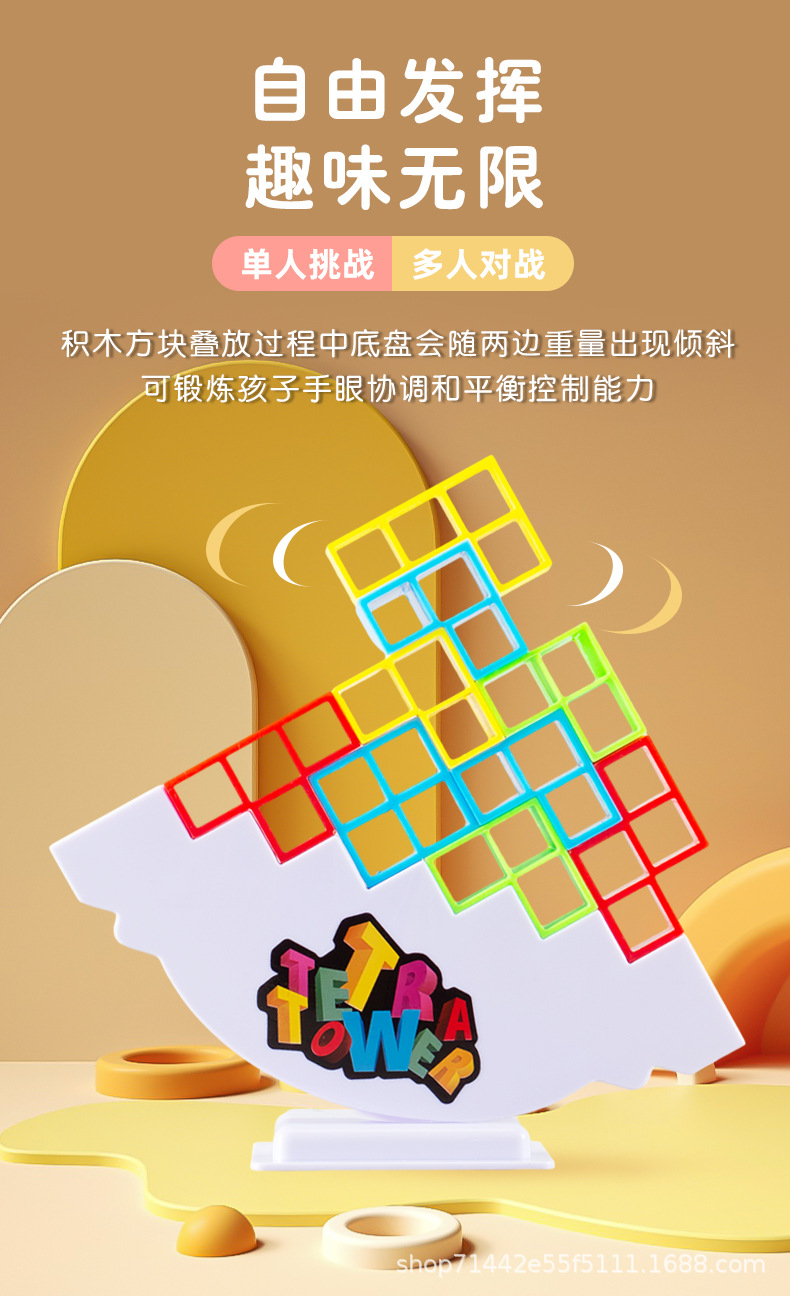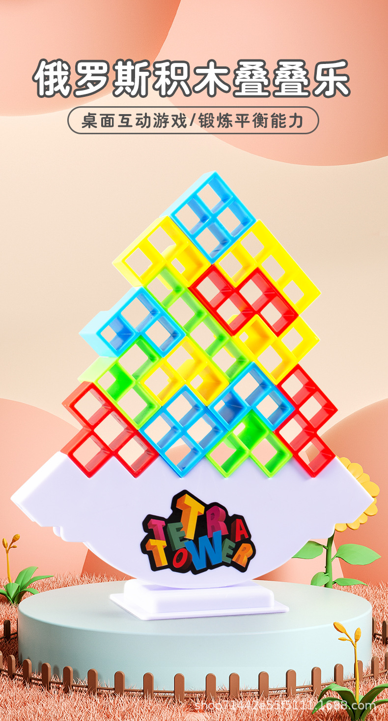 Venta caliente transfronteriza columpio para niños apilados altos bloques de construcción rusos bloques de construcción de equilibrio cuadrado jengle juguetes de escritorio