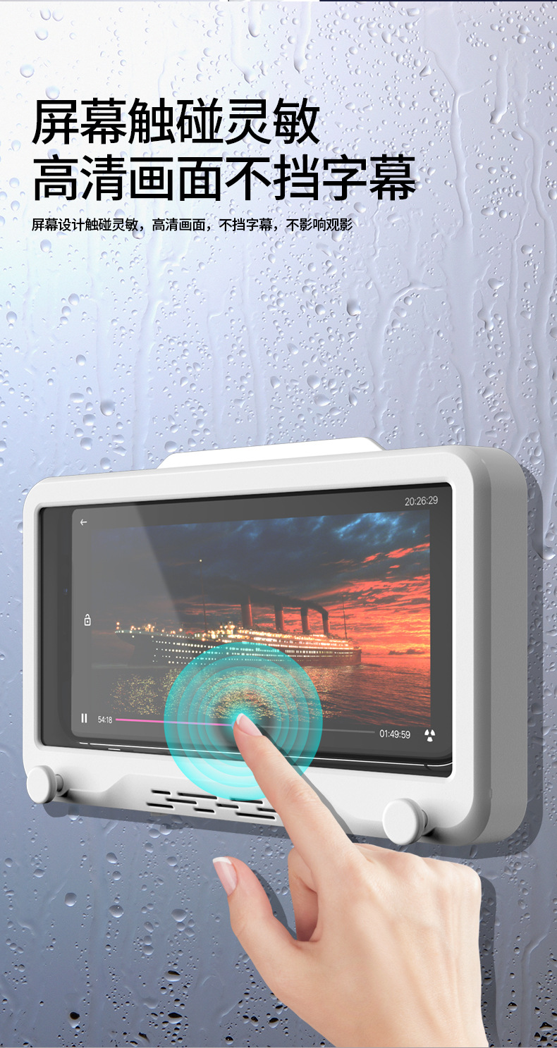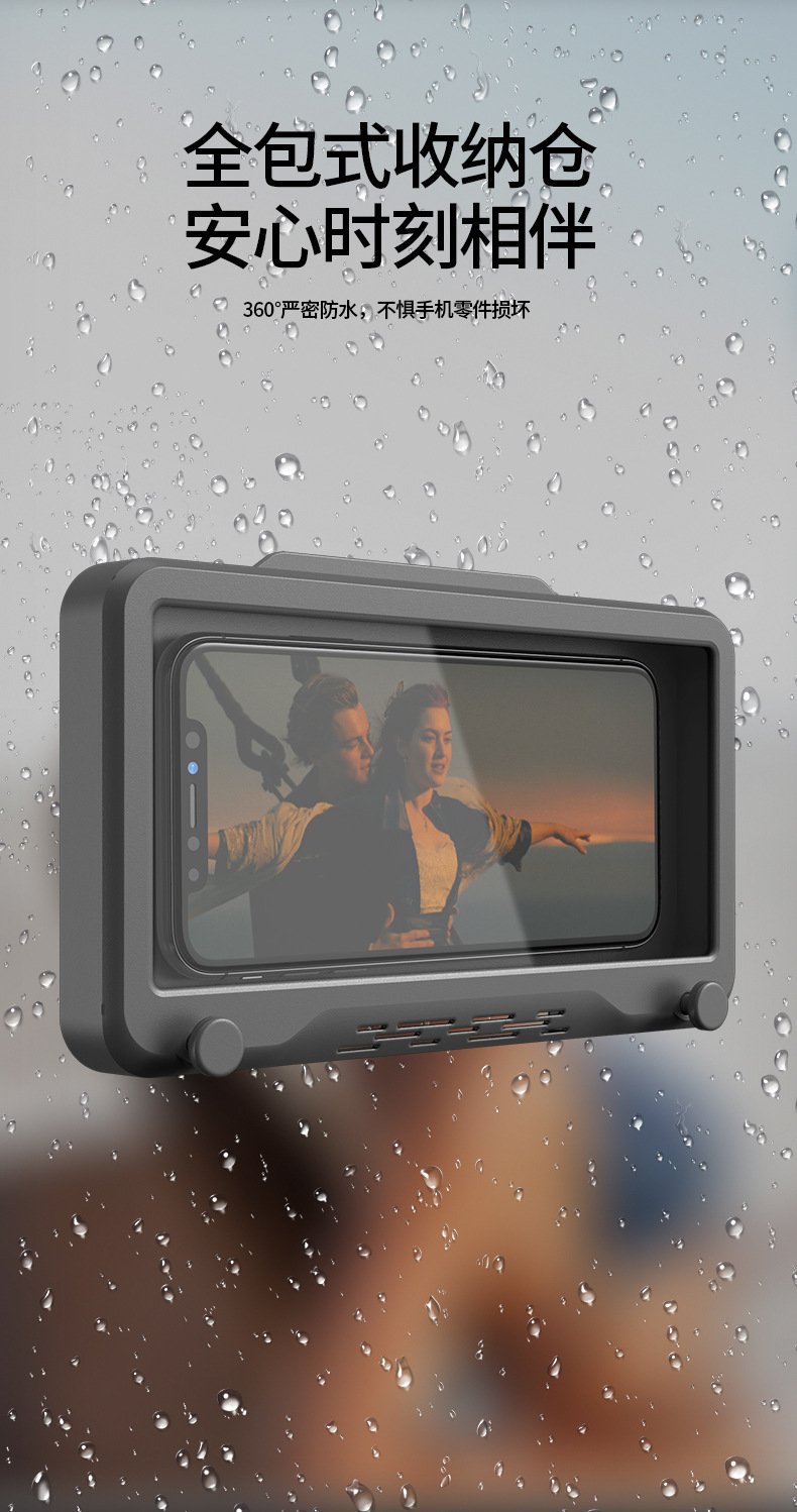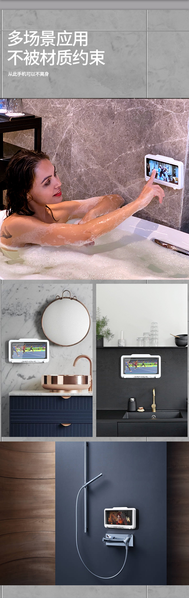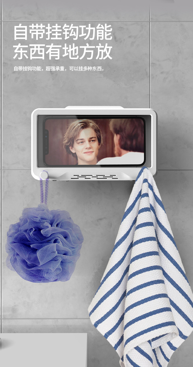 Baño teléfono móvil Caja impermeable anti-niebla montado en la pared baño cocina Punch-libre giratorio teléfono móvil soporte caja impermeable