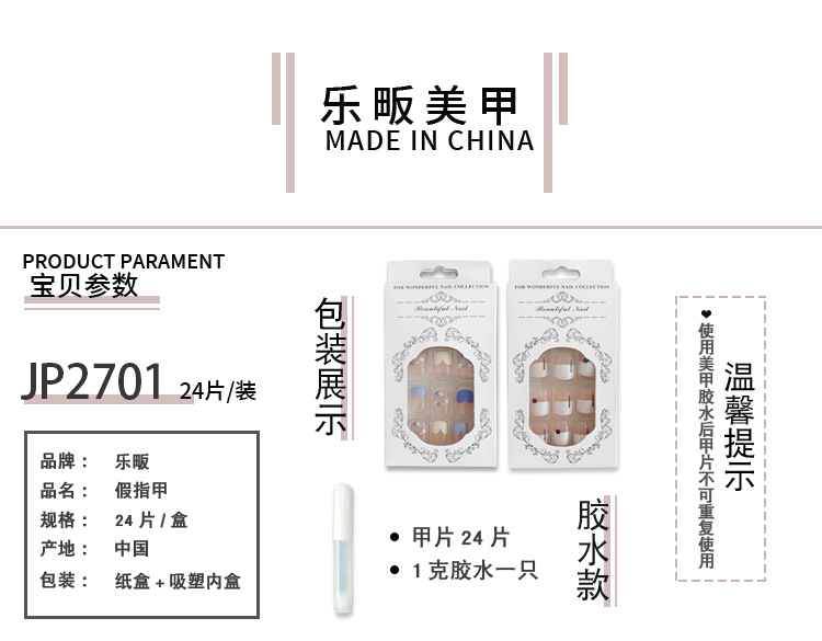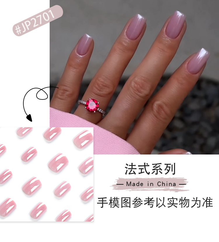 Simple francés desgaste uñas desmontable manicura al por mayor corto cuadrado falso clavo pieza prensa en las uñas